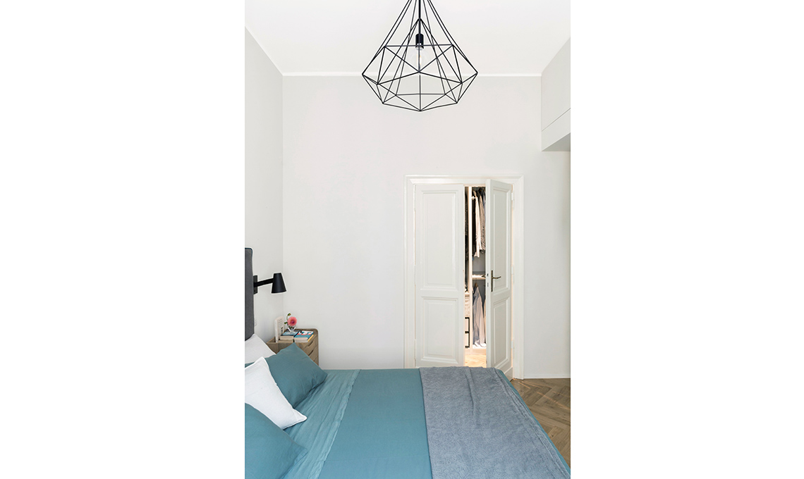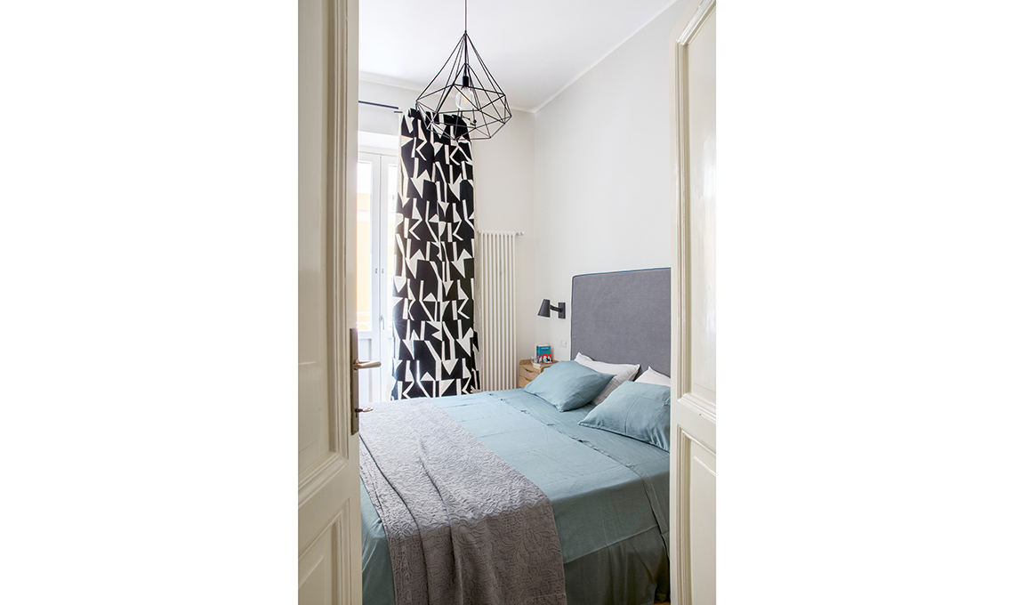 Lenzuola e plaid [Fazzini]. Se vuoi un lampadario simile a quello in foto, cerca ‘lampadario diamante’ su manomano.it, luciamo.it e anche ebay.it. Se ne cerchi uno molto scenografico in fil di ferro nero (ma anche in altre finiture, come il rame!) guarda Parachute di [Ligne Roset].