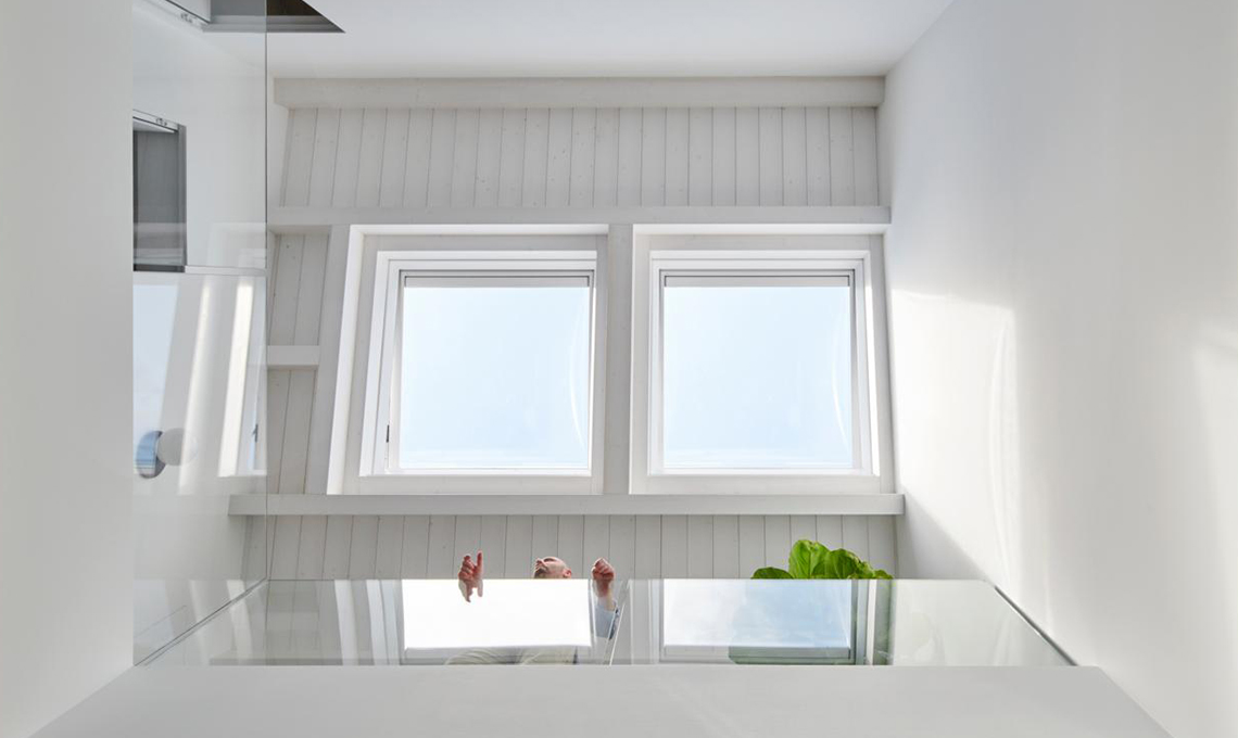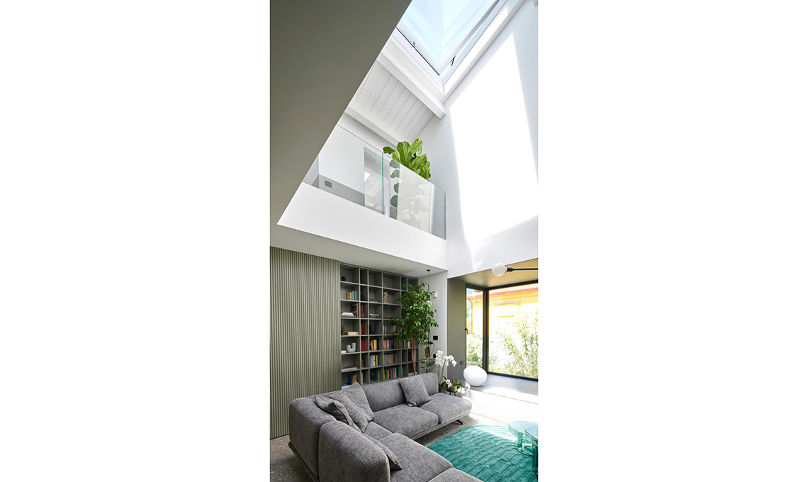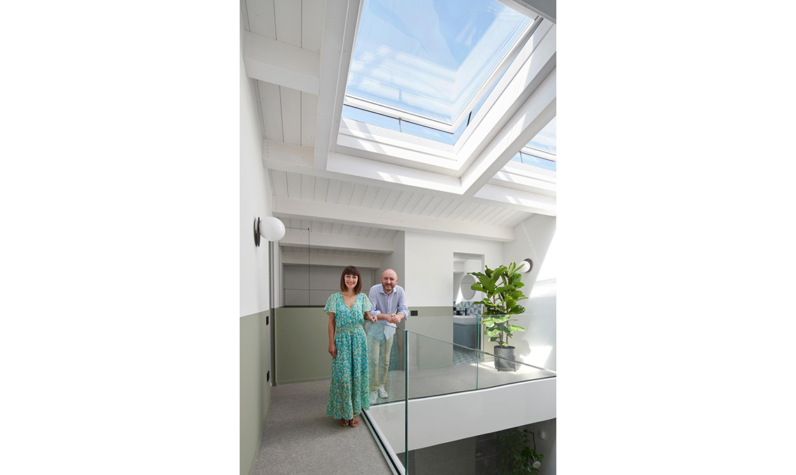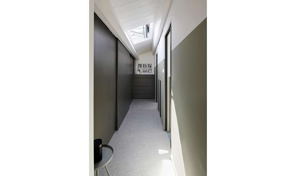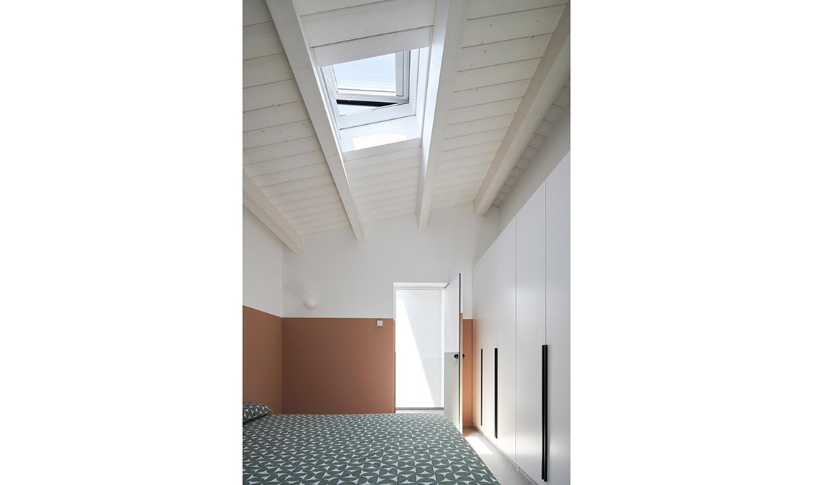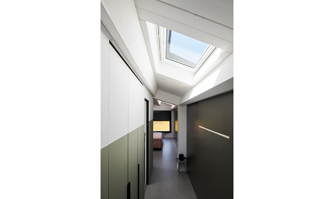Truccarsi la mattina e scegliere i vestiti nell’armadio senza accendere lampade? Prevedendo finestre nel tetto nei bagni e nel corridoio, dove sono concentrate le armadiature della casa, il progetto di Susi e Andrea riduce l’uso della luce elettrica e facilita la vita. «Ci piace progettare pensando al comfort» dicono.