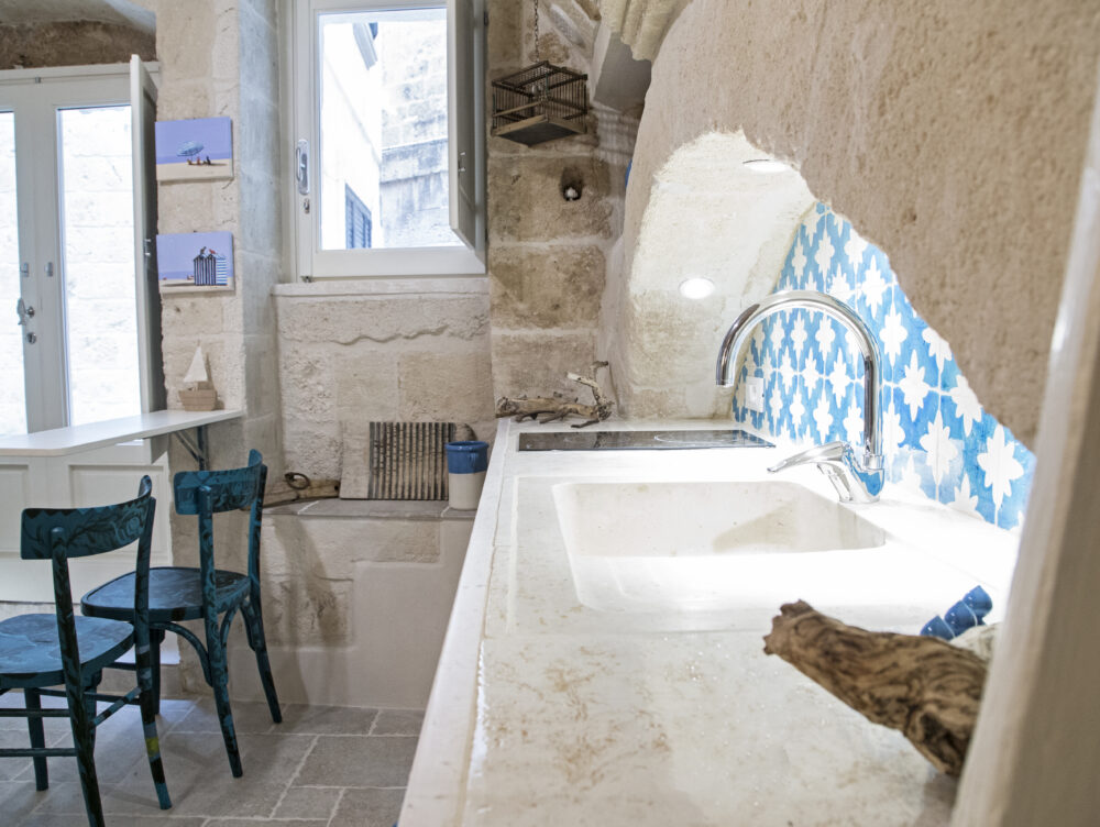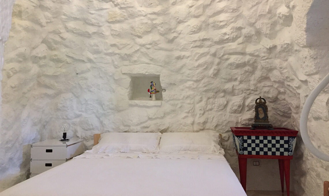 Il recupero di questa piccola architettura rurale è stato curato da Antonio Surdo – salentino doc – che di mestiere fa il designer. In questa progettazione, Antonio ha lasciato il timbro creativo ereditato dal marchio di famiglia, Kubico, che da quarant'anni si occupa di architettura d'interni. Un mix di colori pop, pezzi di design e oggetti tipici della cultura locale.