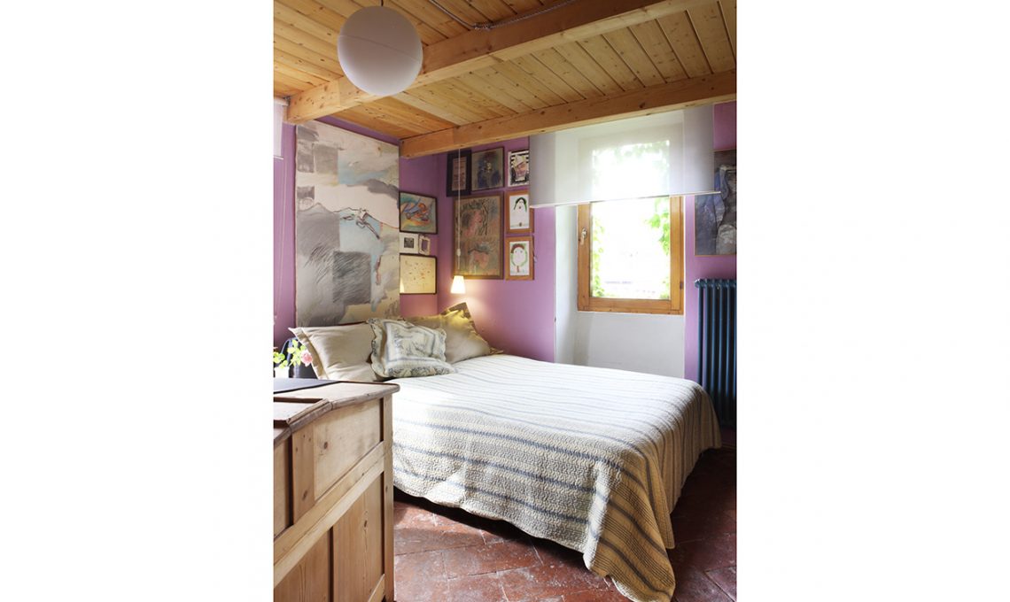 La cameretta è caratterizzata da un giocoso letto a castello, realizzato in una rientranza che diventa una stanza nella stanza. Nelle nicchie esistenti, per esempio sotto la finestra, sono ricavate mensole e piccoli scrittoi, mentre gli arredi sono stati tutti recuperati da una scuola che li dismetteva. Come in tutto il resto della casa, sverniciando e trattando, oliando e incerando, gli strati di colore degli oggetti riaffiorano e raccontano le loro storie.