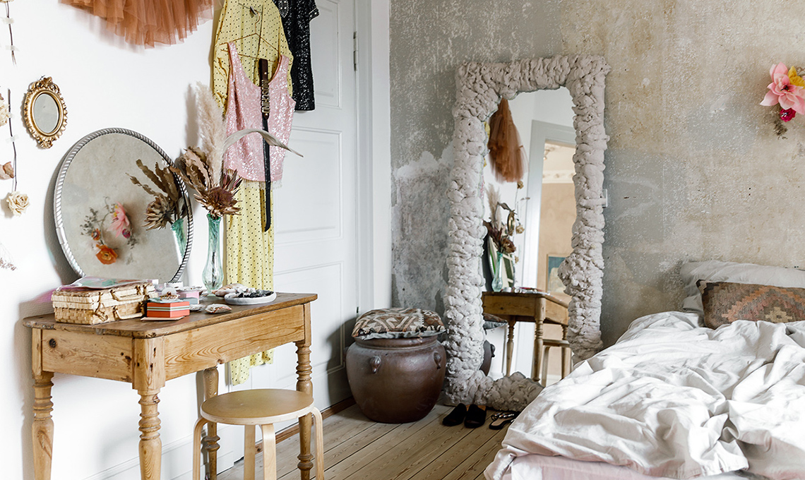 appesi al muro sono il match perfetto con la cornice dorata, lo specchio, i ninnoli e la collezione di vestiti vintage.