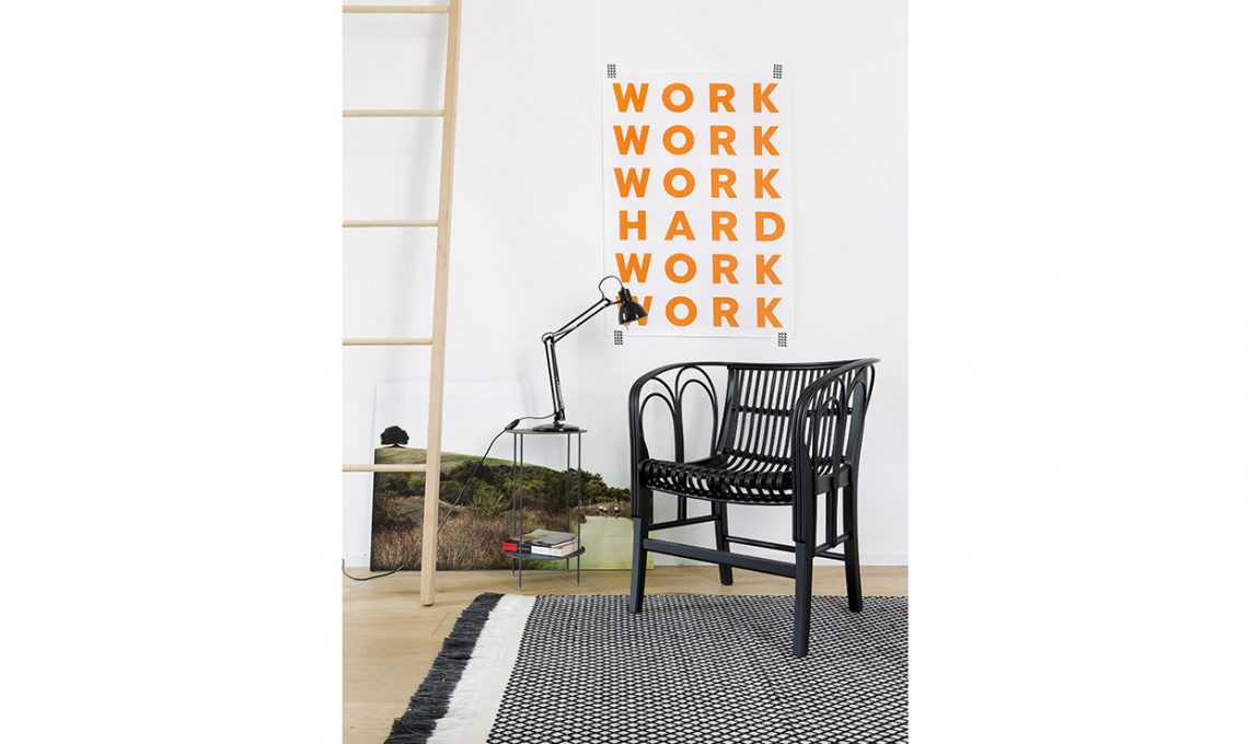 La poltrona di design [De Padova] troneggia nell’angolo lettura. Doppio uso per il tavolino [Alf DaFré] e la lampada [Leucos] che diventano comodino per la notte. Quasi un monito il poster a parete [Design Republic]. A terra, una foto scattata da Giandomenico durante ’l’Eroica’, una manifestazione con biciclette d’epoca.