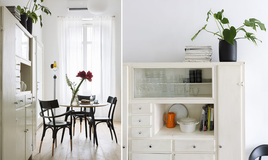 Il restyling? Radicale (via i divisori interni) ed estetico. Tolto il controsoffitto, le travi sono state riportate alla luce e dipinte di bianco, come le pareti. «Mi piace lavorare con la luce naturale. La scelta del bianco mi permette di sfruttarla al massimo» racconta Giandomenico.