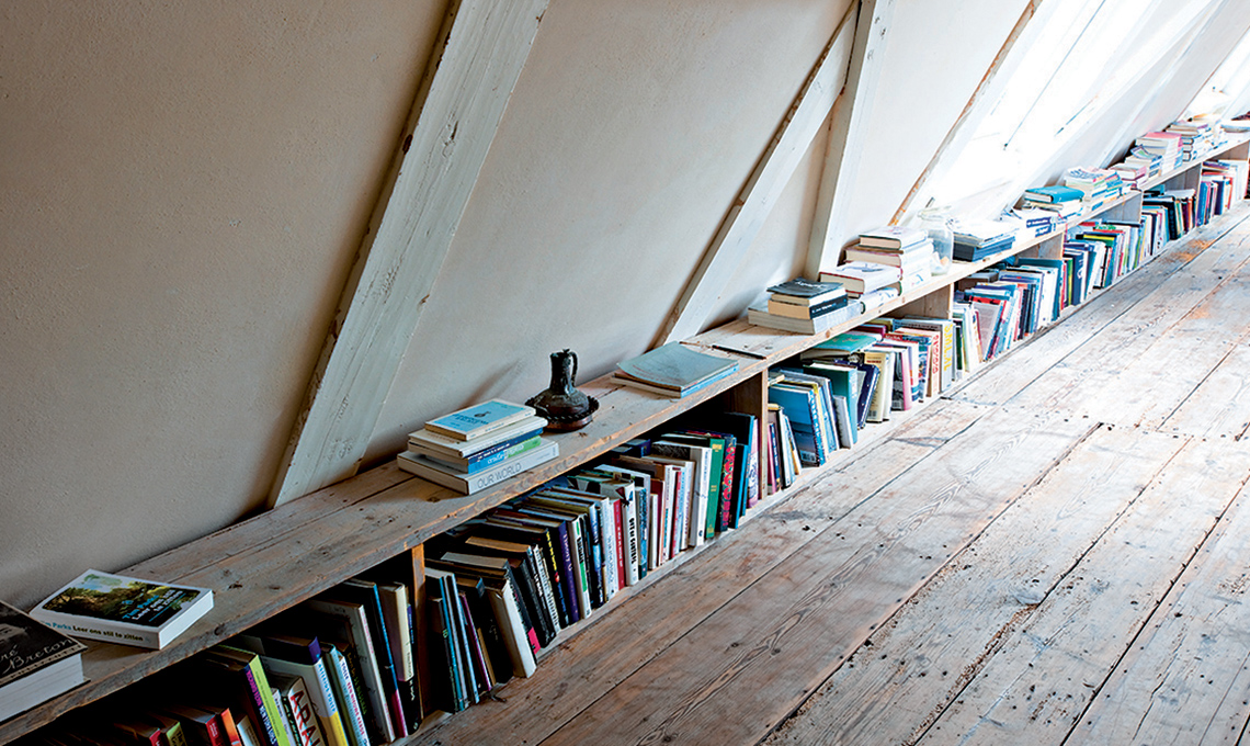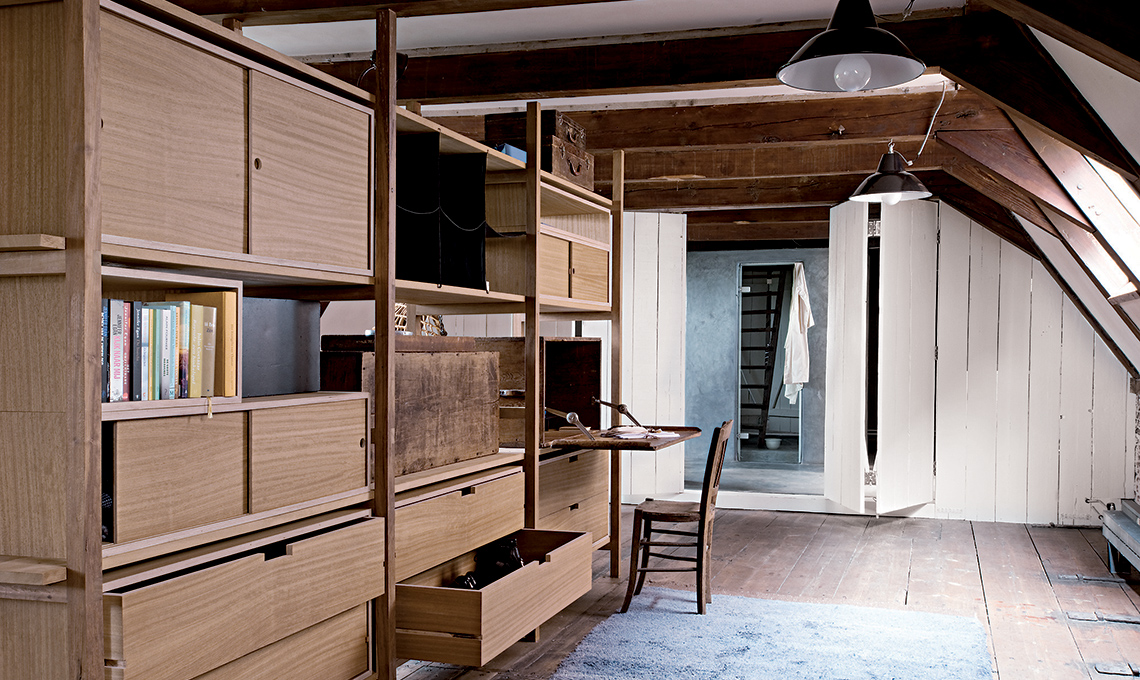 Il modo migliore per organizzare uno studio può essere ripensarlo con una grande libreria passante che ospita un piano a ribalta e separa il lavoro dal relax. In questo caso, la scelta
