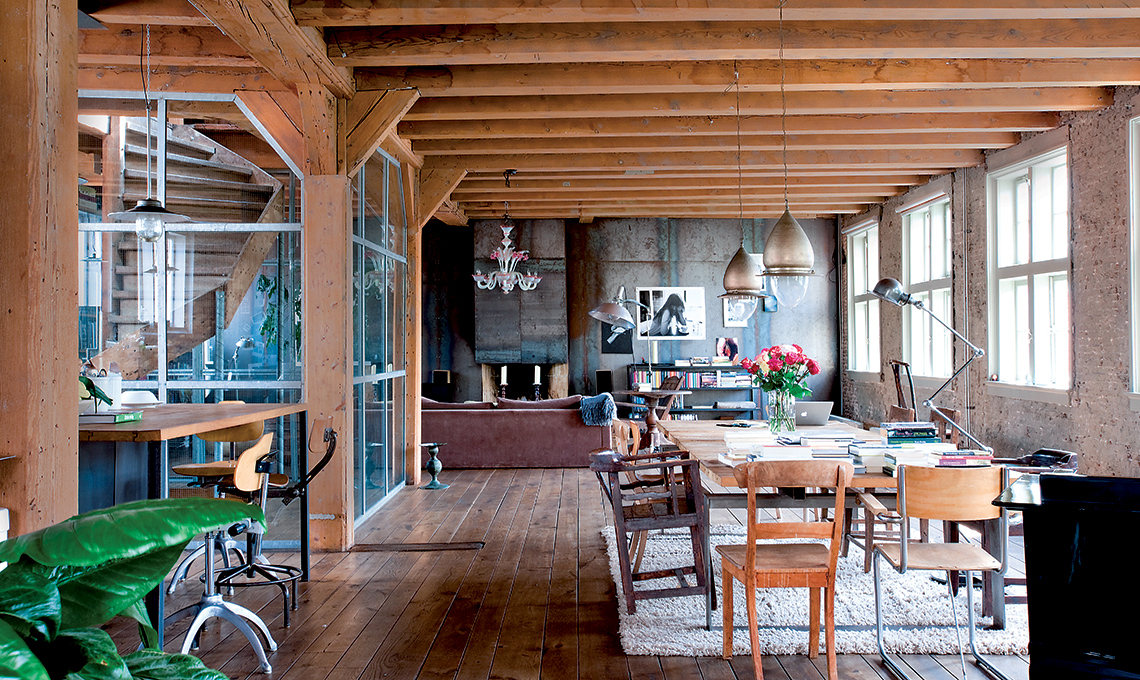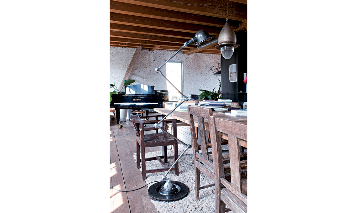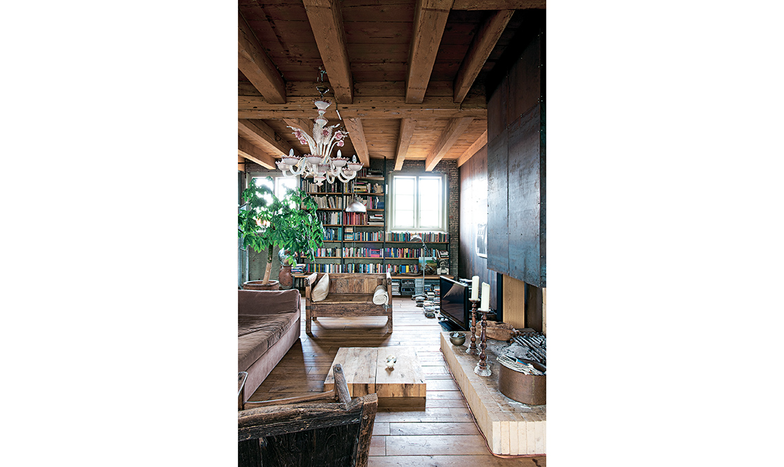 Non c’è angolo di questo loft che non trabocchi di materiali rustici – più di quanti se ne possano immaginare nello stesso contesto – e mobili di seconda mano, intercettati nei mercatini o nelle fiere dell’antiquariato e mantenuti nella loro autentica trasandatezza... ‘grunge’.