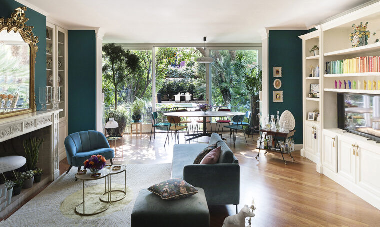 lampade simile a Huna [FontanaArte]; a sinistra, poltrona in rattan simile a Lovina [Maisons du Monde € 499] o Egg [Sika Design € 1.759]. Trovi buon modernariato su [STØV vintage furniture] e [Pamono].