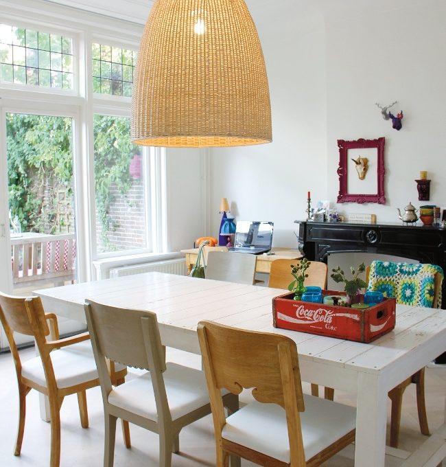 La creatività per me è una necessità, mi rende felice», questo ci risponde Inge quando le chiediamo di spiegarci il processo creativo che ha trasformato una vecchia casa della fine dell’800 in un’attuale e personalissima “family home”. «Cercavamo una casa piena di fascino e con dettagli originali. Quando abbiamo trovato questa non ci siamo fatti intimidire dai tanti lavori di ristrutturazione necessari». Il grande salto è avvenuto due anni fa quando, con il marito Roel e il figlio Skip, si sono lasciati alle spalle una casa moderna e piena di comodità, per iniziare una nuova avventura nella sistemazione di questa villetta che ha più di 100 anni. La sua formazione come vetrinista e la grande passione per il décor e l’arredamento hanno guidato Inge nelle sue scelte: ora questa casa accoglie le diverse anime della famiglia. Influenze etniche, scrapwood, mobili di seconda mano e un tocco industriale: tutto si mescola e si fonde, con tocchi decisi di colore e originali pezzi handmade. Un nido in cui è possibile rilassarsi ed essere se stessi, seguire le proprie passioni e cambiare con il passare del tempo.