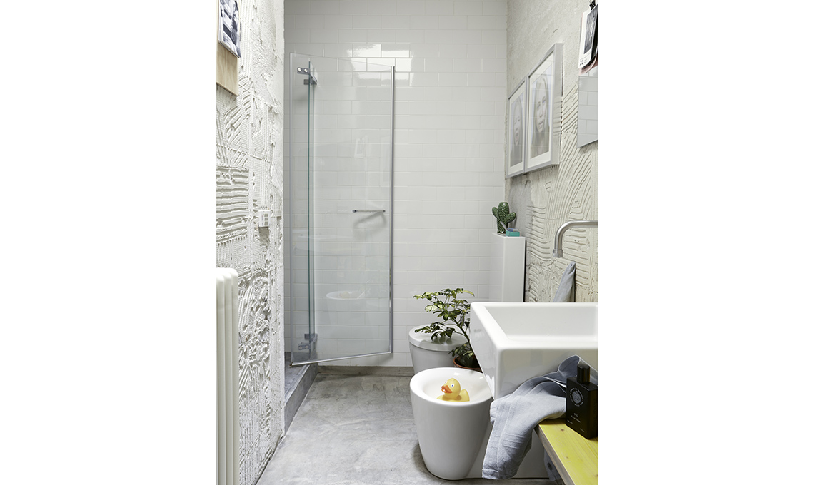 Il carattere ‘raw’ e industriale torna nella zona notte, al terzo livello, con soluzioni insolite: la testiera del letto è… la canalina a vista dell’elettricità! E in bagno, il muro d’effetto è la superficie in malta così come si presenta prima di posare le piastrelle. «L’aspetto non finito suggerisce movimento, progetto, potenzialità: che è poi il nostro stile di vita» dice Riccardo. Uno stile che ha anche un’anima giocosa: e proprio come i materiali da costruzione non è tenuta nascosta, ma felicemente condivisa.