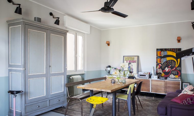 Il contrasto della superficie naturale e calda del legno con l’effetto industriale del pavimento in cemento regala allo spazio uno stile contemporaneo e informale allo stesso tempo.