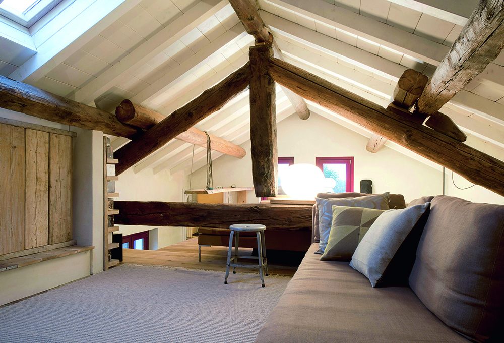 Per parquet e mobili si sono scelte essenze chiare come faggio, abete, acero e frassino per dare più luminosità all’ambiente e per adeguarsi alle travi preesistenti.