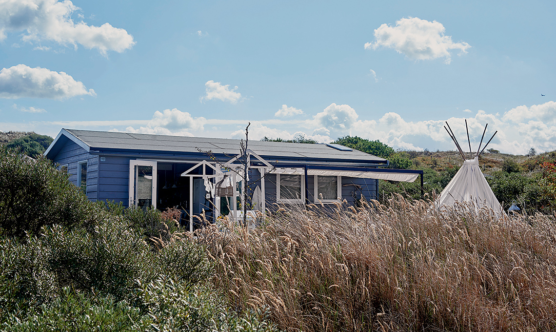 La vecchia stufa, la credenza, il tavolo con la panca e le sedie, l’angolo lettura. Hélène ha scelto pochi arredi, ma robusti e funzionali. La casa si vive all’esterno: nel patio, tra le dune e sulla spiaggia...