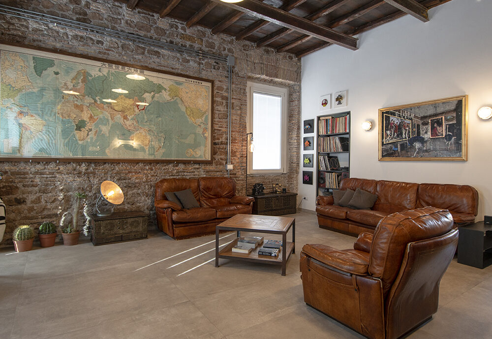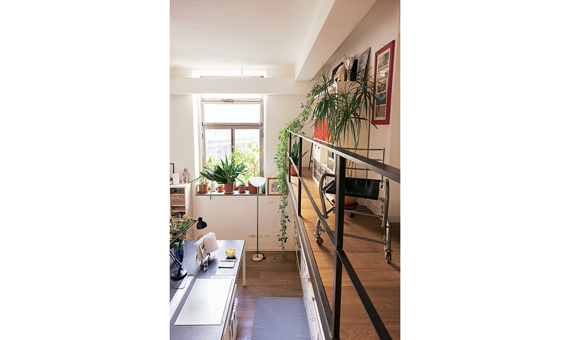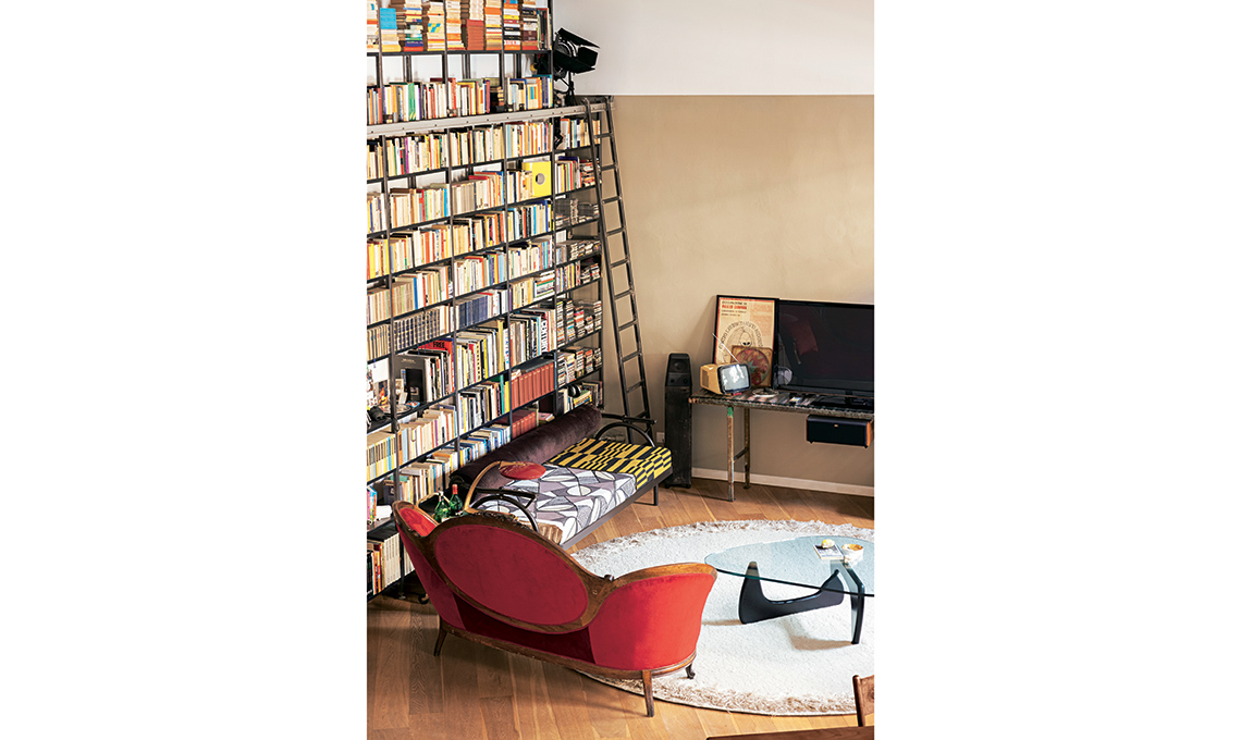 Sfruttate le altezze per le librerie e la luce per le piante, lo spazio è stato arredato con pezzi d’epoca. La sensazione è di entrare in una galleria di ricordi e di icone che hanno fatto e segnato il percorso artistico culturale dell’Italia intera.
