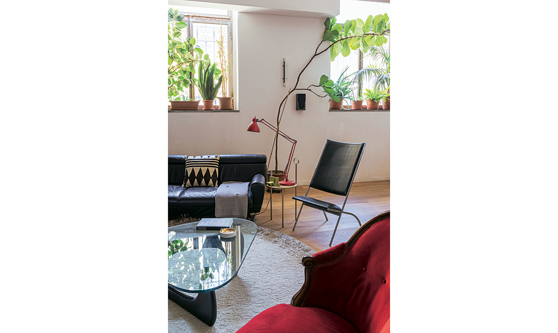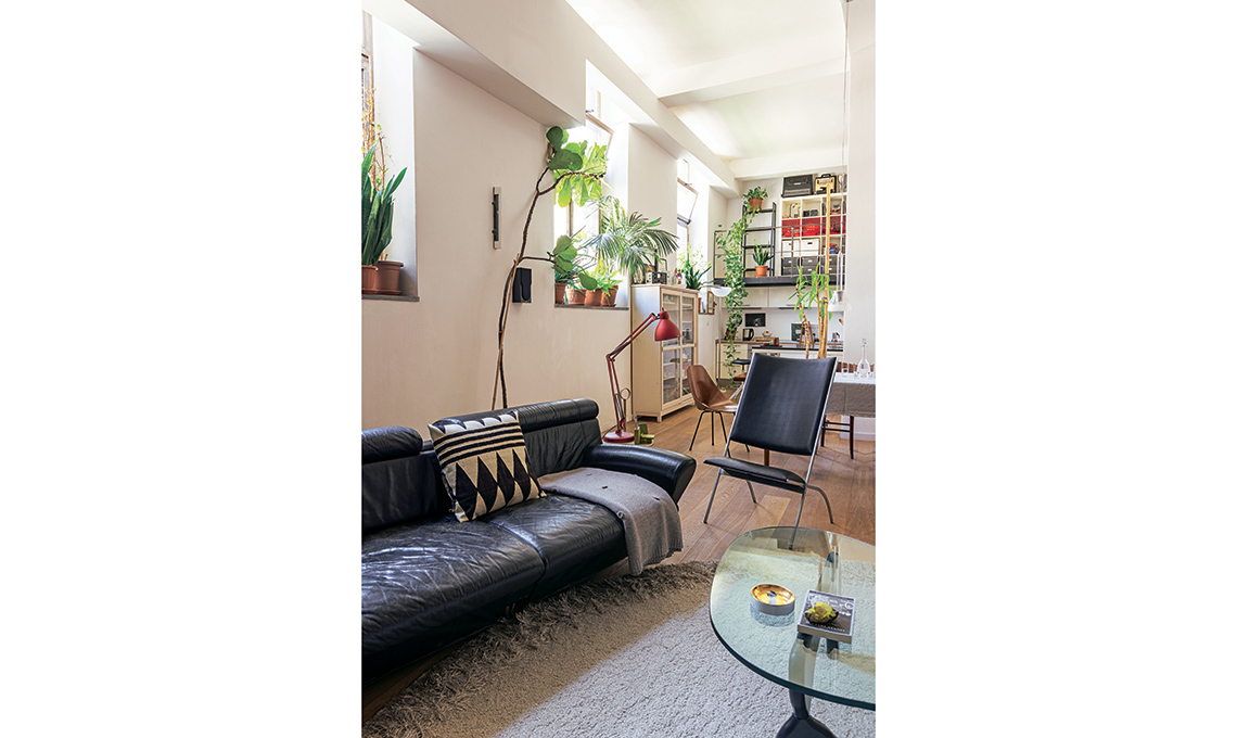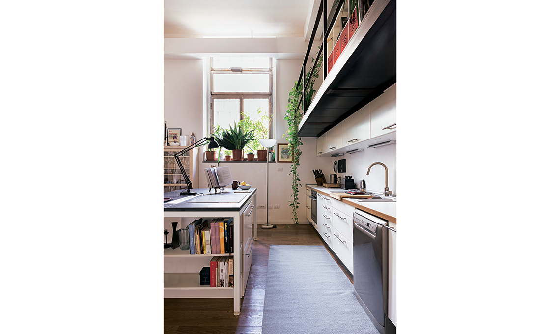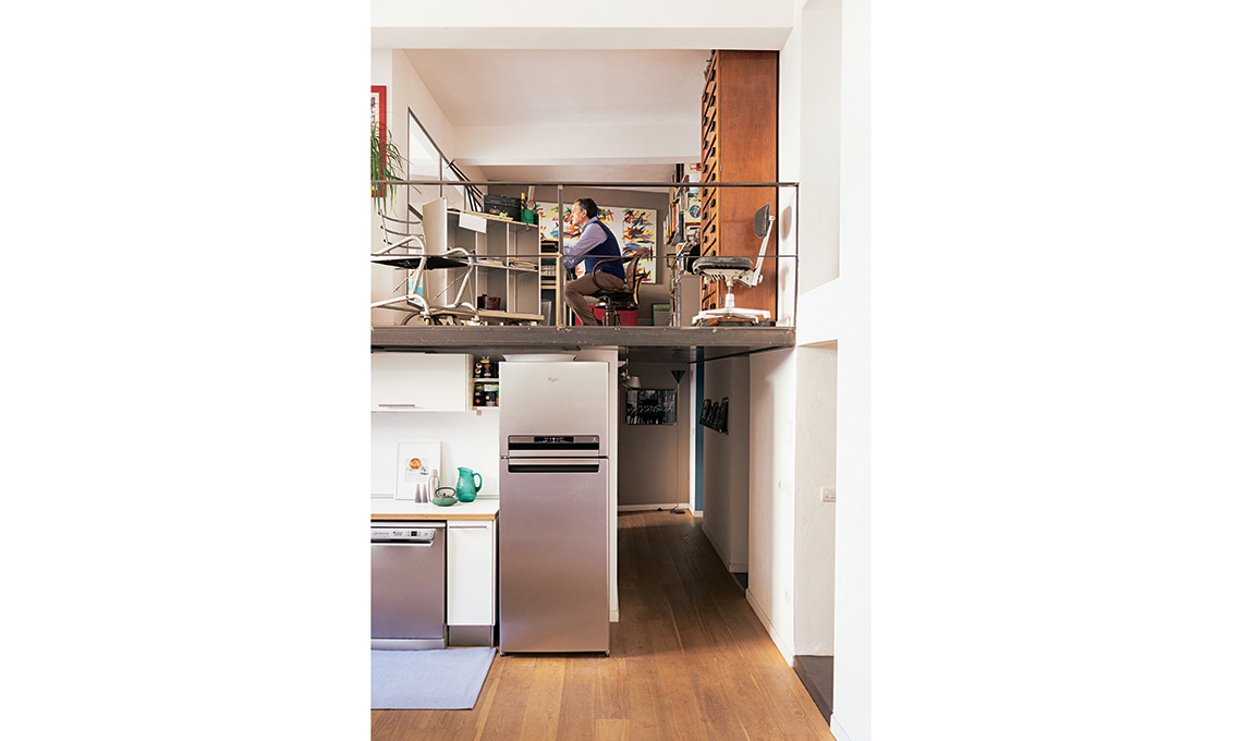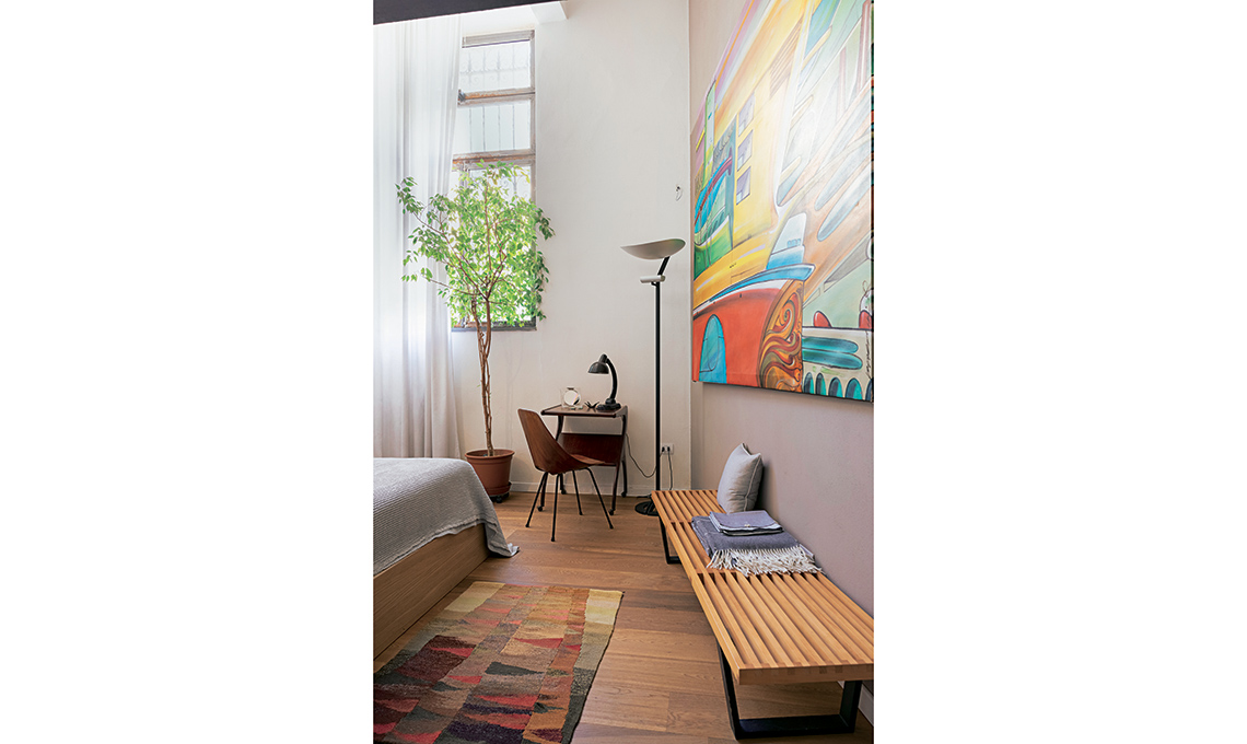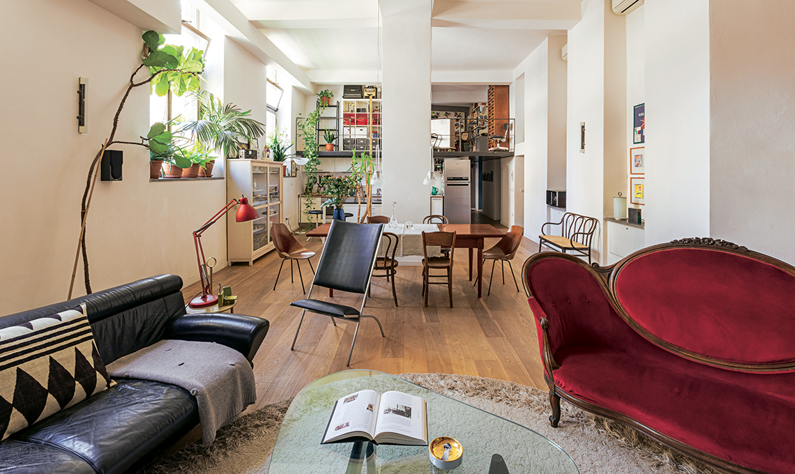 Il passare di un secolo ha scandito le tante vite di questo spazio al piano terra di un palazzo costruito tra gli Anni ’20 e ’30, ai margini della ferrovia di Milano: lo sferragliare dei treni ha fatto da sottofondo a un laboratorio di pasticceria, a una tipografia e, negli Anni ’60, alla sede di una società di produzione audiovisiva da cui sono transitati artisti come Mina, Adriano Celentano, Dario Fo, Franca Rame, Giorgio Gaber, Walter Chiari, Enzo Jannacci. Oggi è lo studio, concepito come una casa, del regista televisivo e produttore Ranuccio Sodi, che ha lavorato in vari set nazionali e si occupa con passione di arte e di design. È suo il libro che racconta la storia della tv generalista: ‘C’era una volta il monoscopio’, edito da Emuse.