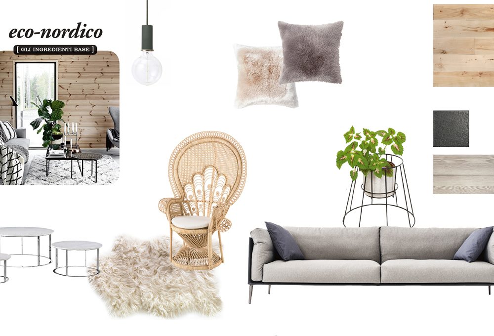e € 179], coffee-table in vetro e noce Maricielo [La Redoute € 229] e in metallo Sangro [Brafab € 47,99 su westwingnow.it], stufa a legna Picard [Kratki € 810].