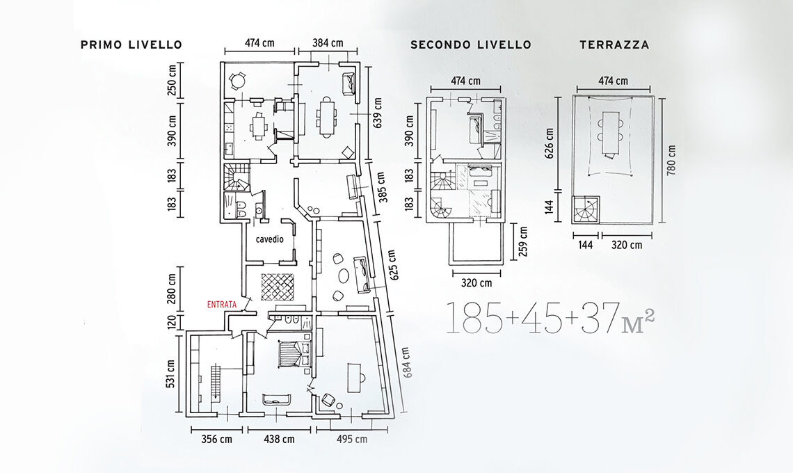 Ogni stanza ha cementine con disegni diversi. Se vuoi acquistarle originali antiche, le trovi [su recuperando.it o su antichitafiorillo.it]. Nuove, invece, [su devon-devon.com, su mosaicfactory. com o su bobool.it]. Qui, le cementine sono state lucidate da [Francesco Cardinale].