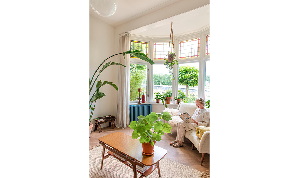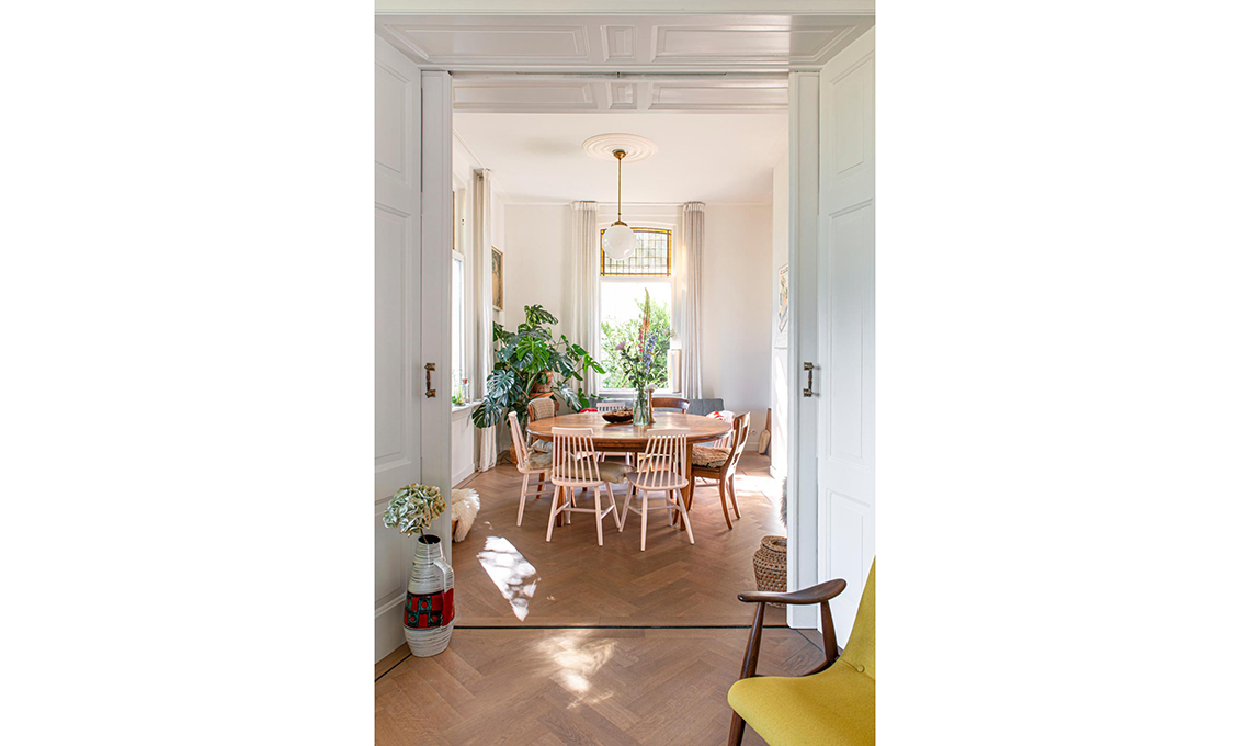Siamo a Dieren, nella parte orientale dei Paesi Bassi, in una villa del 1910. «Stavamo pensando di sospendere per un po’ la ricerca di una nuova casa», ricorda Jolein, «quando ci siamo imbattuti in questa meraviglia: soffitti alti, grandi vetrate, parquet in rovere spina di pesce... Fin da subito, un emozionante tuffo nel passato!».