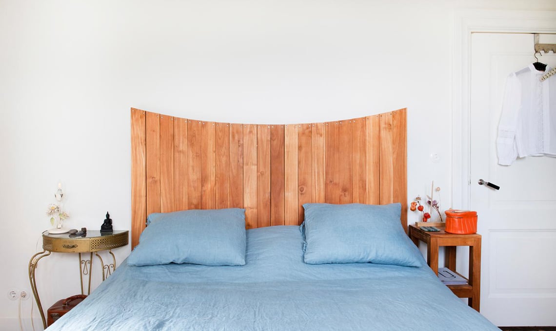 Testiere fatte di assi di legno, già pronte, su maisons dumonde.com e tikamoon.it. Se invece ti piace cambiare spesso, puoi ottenere un effetto simile con gli stickers: sono in vendita su stickersmurali.com e