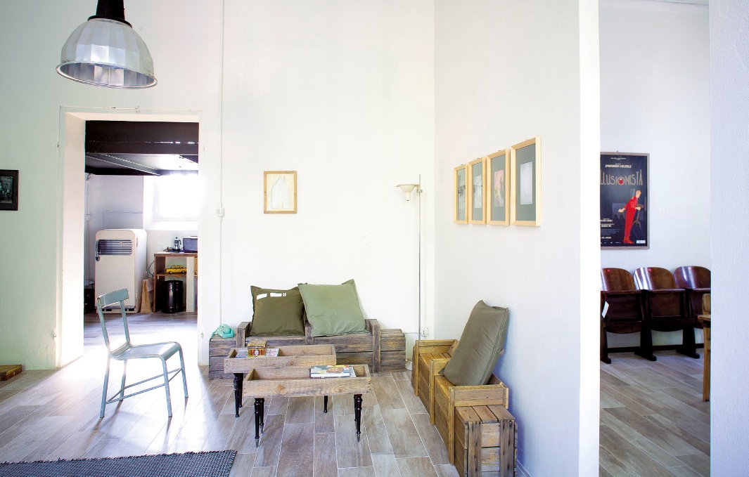 Siamo tra i muri di una scuola primo ’900, in un borghetto vicino a Reggio Emilia: pochi mobili grezzi, tanto spazio e un’atmosfera accogliente.