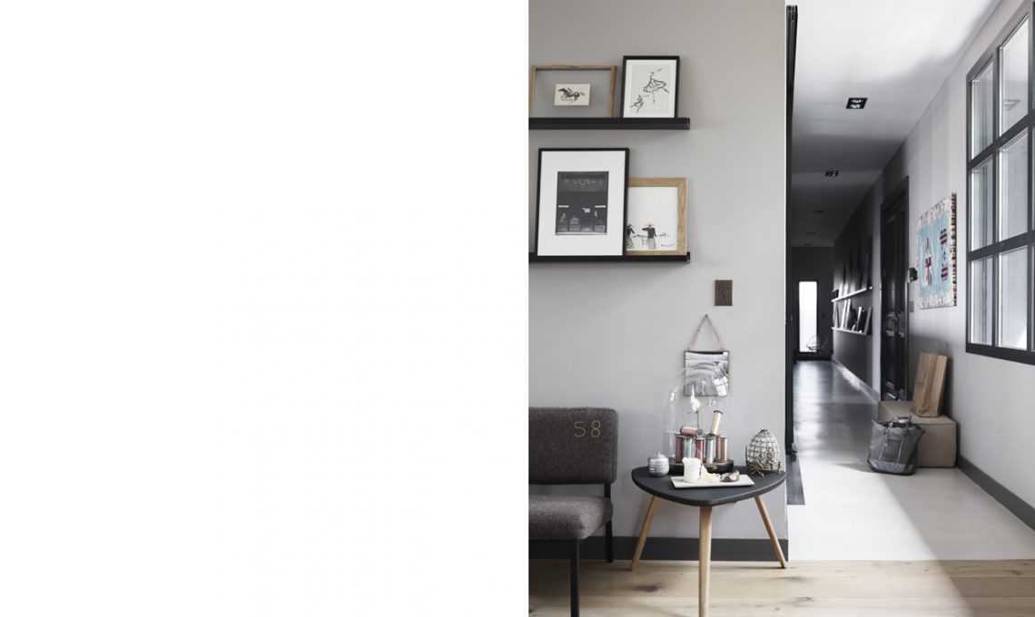 I fattori vincenti di questo progetto sono una palette acromatica che lavora di bianchi e di grigi, e un uso ‘sensibile’ (in tutta la casa sono stati usati legni di recupero delle foreste dell'Europa orientale" del legno, impiegato per la strepitosa boiserie del camino o il soffitto della cucina.
