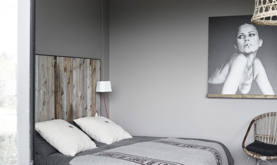 L’idea della testiera a doghe è facile da copiare se utilizzi scarti non pregiati, ma ricchi di ‘poetici’ segni. Lampada con filo rosso Nuage [Designheure in vendita su » madeindesign.it].