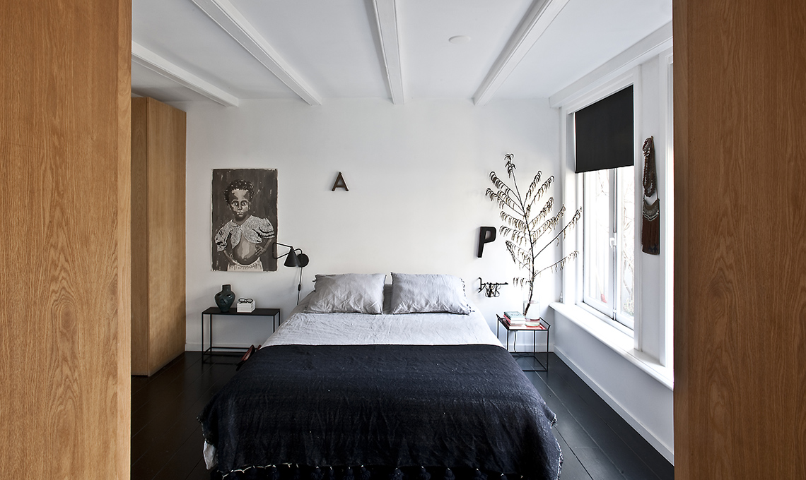 Nonostante la rigorosa audacia del bicolore, la zona notte è perfetta per conciliare il relax: merito di un’impostazione pulita e decorativamente morigerata, priva di disturbi visivi. Il piacere dell’eclettismo fiorisce invece nei dettagli.