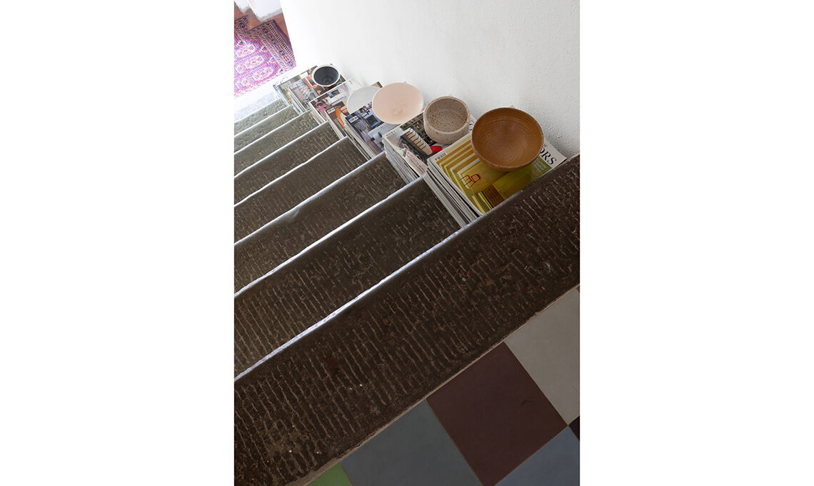 La scala prende vita se su ogni scalino metti qualche rivista ben impilata e un vaso (queste ciotole sono opera di Britta).