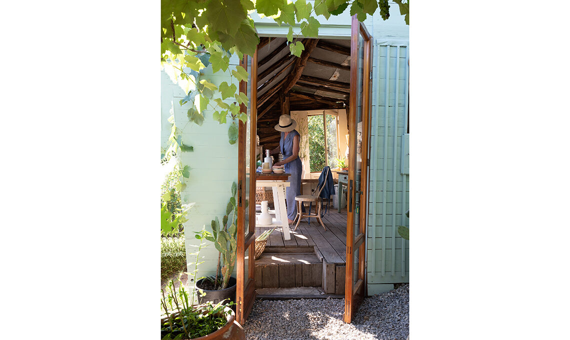 Poco lontano dalla casa, c’è lo studio di Britta, dove sperimenta e crea le sue ceramiche. Usato solo d’estate, ha sia la struttura (il pavimento è realizzato con assi riciclate) sia gli arredi di recupero.