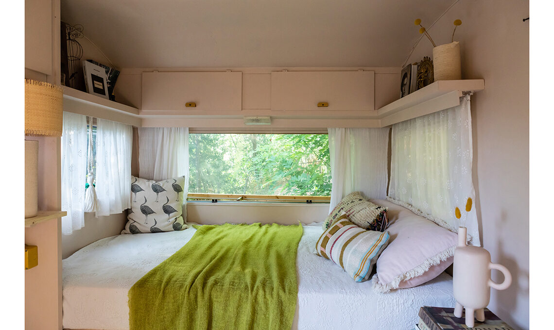di Britta: «Non ho mai capito perché siano sempre così brutte, con quei terribili adesivi». L’interno, arredato con un materasso su misura, ora ha un meraviglioso effetto cocoon.