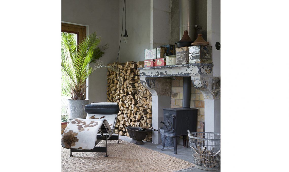 La stufa di ghisa è stata incassata nella cornice del vecchio camino. La chaise longue LC4 è un altro cult di design che aiuta a ‘rompere’ la coerenza di stile [Cassina €4.150].