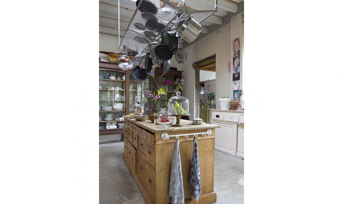 Una cucina come quelle ‘di una volta’, dove l’apparente disordine del tutto-a-vista sottolinea lo stile easy di chi abita qui. E si sposa perfettamente con l’aspetto ‘raw’ di legno, metallo e cemento.