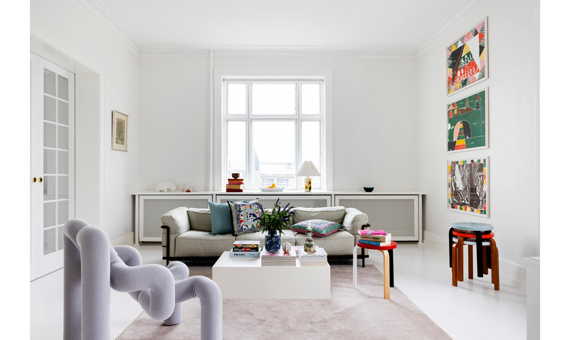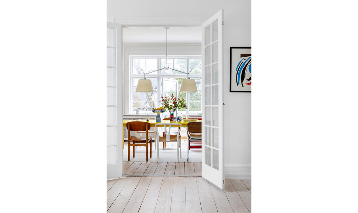 Dal colore... al bianco! Ristrutturato da pochissimo, l’appartamento – che si trova in una villa del 1901 a Hellerup, a nord di Copenhagen – aveva soltanto bisogno di una rinfrescata.