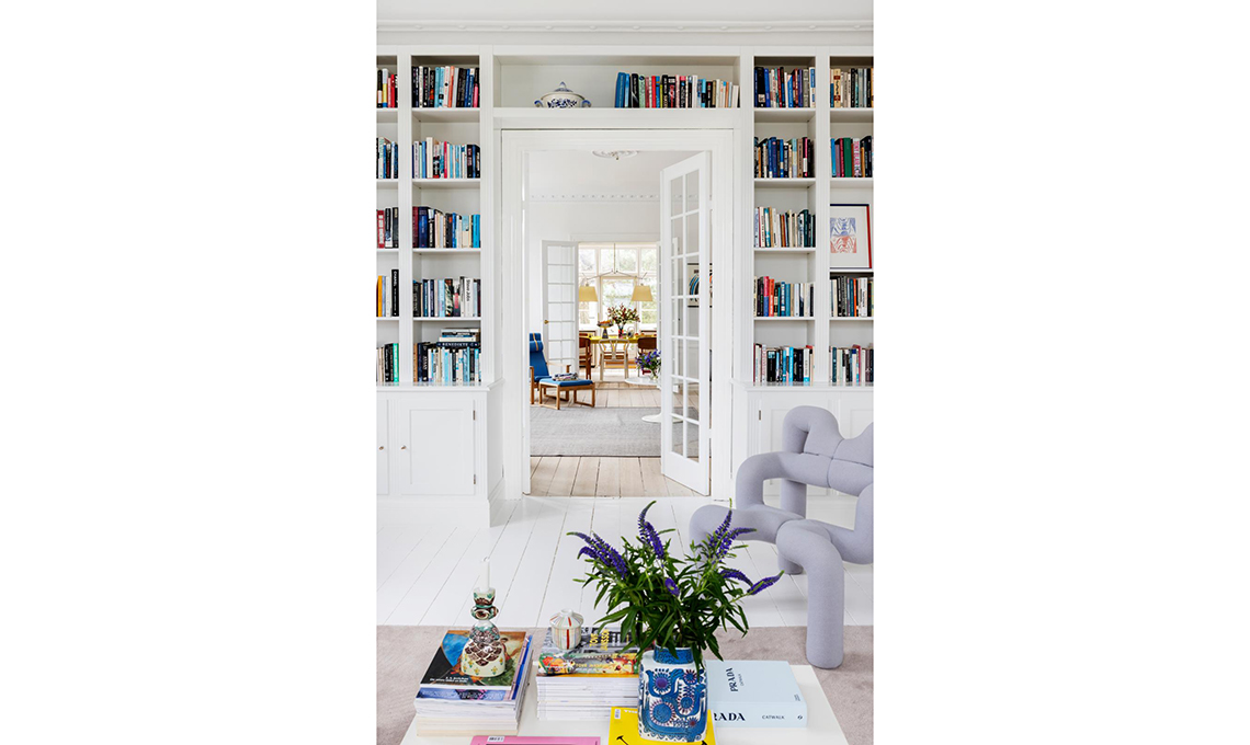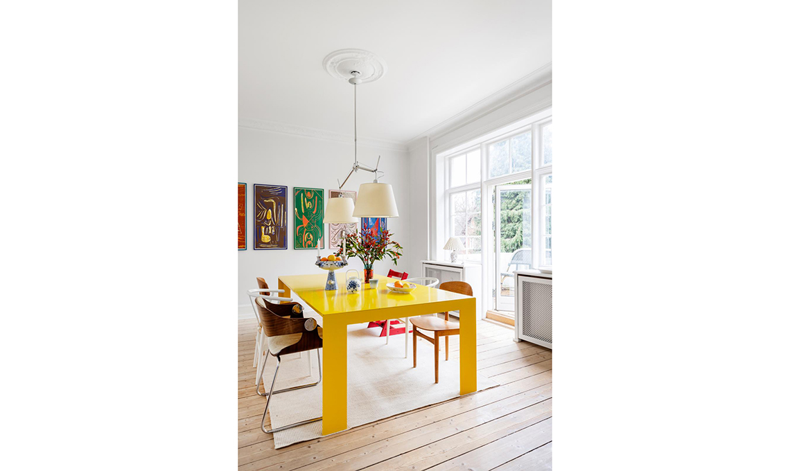 Andando controcorrente, Mai e il marito Søren Peter hanno deciso di rinunciare al colore e riportare le pareti al bianco. «I muri ora sono una vera tela neutra... Lo sfondo ideale per la nostra collezione di quadri e pezzi d’arte», racconta Mai. Durata, qualità e design sono il motto di famiglia nella scelta degli arredi.