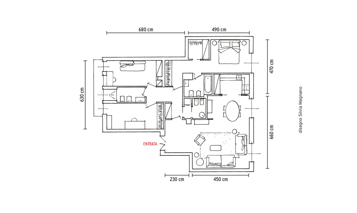 Katia aveva le idee chiare: voleva una casa raffinata e non banale, che parlasse di lei. Così le pareti si sono vestite di grafismi e disegni preziosi, gli imbottiti di velluti e l’ottone scintilla dappertutto. Qui non serviva rifare i lavori, quindi Vanessa ha plasmato gli spazi vuoti con finiture, mobili e decori partendo da zero.