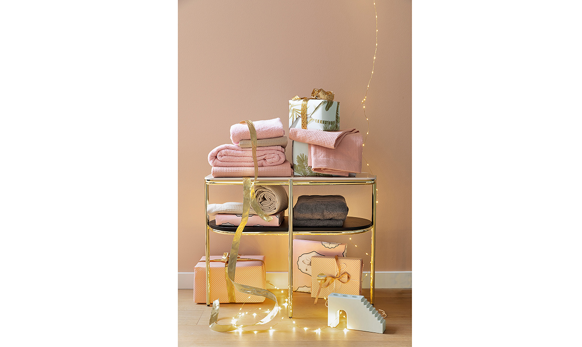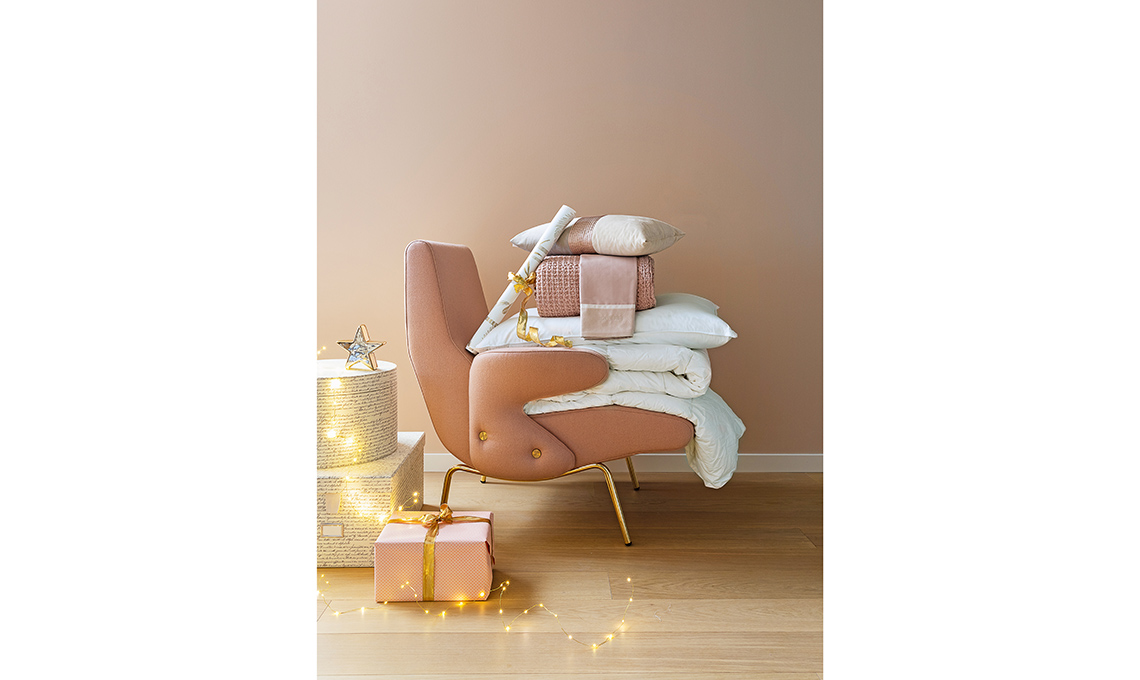 € 26], copriletto matrimoniale Nettare [Fazzini], federa del set lenzuola Spillo e cuscino Plissé [La Perla], scatole e carta regalo [Grafiche Tassotti], stella [Maisons du Monde].