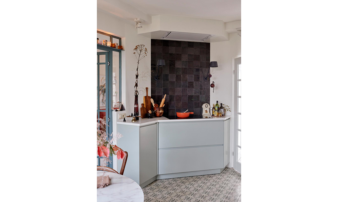 Nella regia dello stile nordico di sfondo, spiccano i tocchi eclettici di Annemie. «Sono alla costante ricerca di un equilibrio nel contrasto» racconta la designer. «Parto da una base neutra, scelgo una palette con un colore vincente e bilancio pezzi di design con arredi vintage.