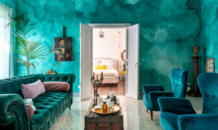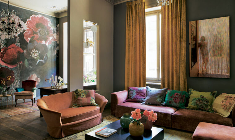 Cenni di tradizione e di folklore rivivono nei mobili di recupero, nei ricordi di viaggio e nei pezzi di famiglia mixati dalla padrona di casa. Il suo stile, vibrante ed eclettico, trasforma l’open space in un luogo ricco di fascino. Italianissimi e super-selezionati i pezzi di design, come la chaise longue Nonnamaria [Flexform, da €2.461] e il divano Dorian [Living Divani, da €3.512].