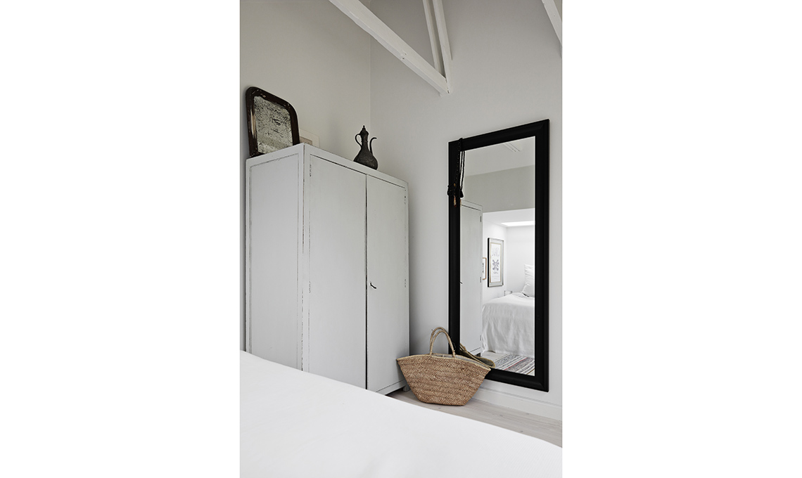 Nonostante le piccole dimensioni della stanza, qui trova posto un armadio a due ante che la padrona di casa ha comprato a un mercatino e verniciato