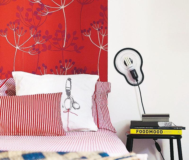 Quale compagnia migliore di una lampada da lettura per rilassarsi prima di dormire? A sorpresa, perfino un oggetto così semplice si veste di grafica: ecco Sticky (Droog Design, cm 18x7x25h €19,95), con contorno nero e bulbo nudo. Delicate eppure robuste, esotiche però legate al piacere del calore quotidiano, discrete ma così affascinanti: le coperte pakistane (€220 cad da Mia) diventano il vero, romantico fulcro dell’ambiente.
