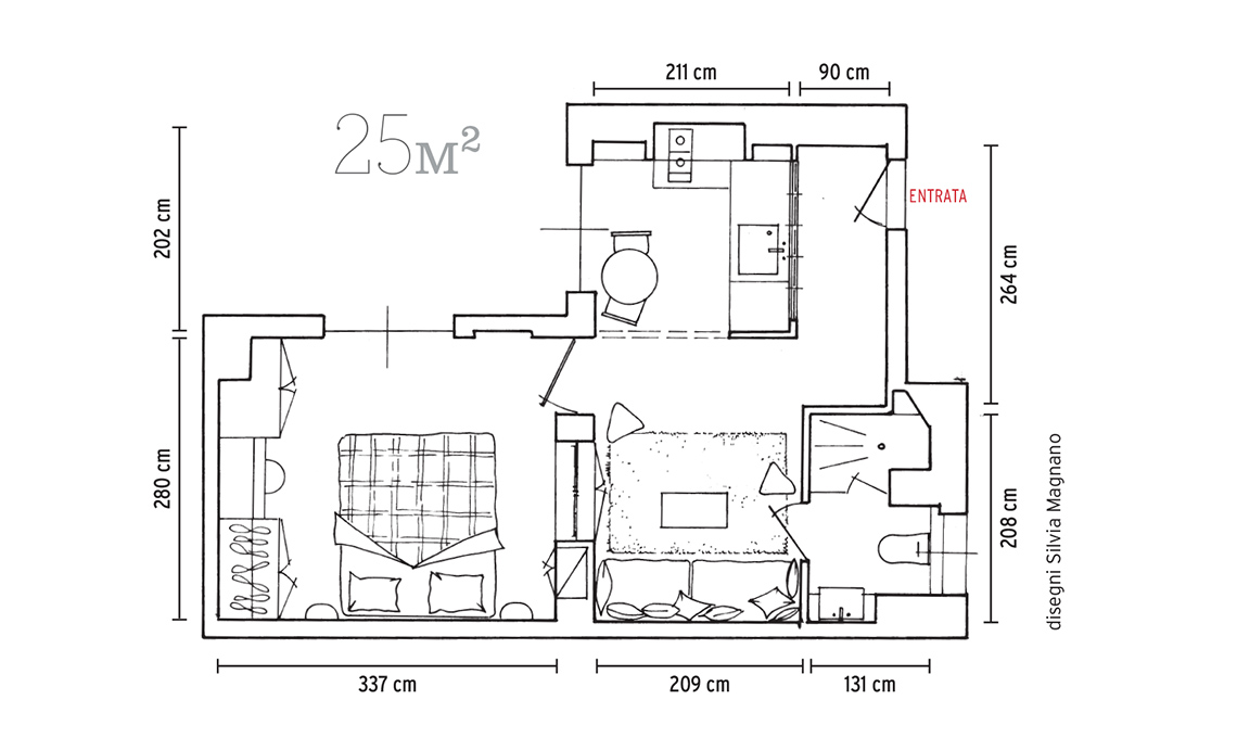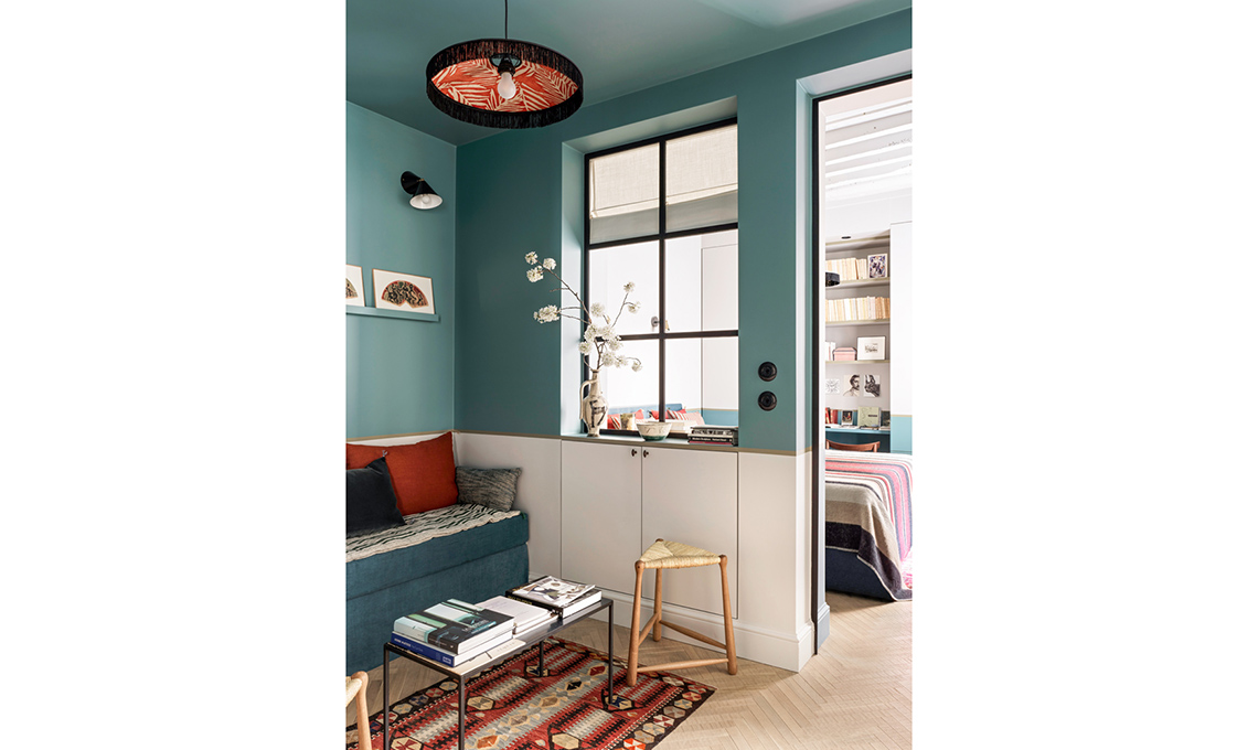 Casa piccola, giù i muri? Al contrario! L'interior designer Marianne Evennou ha ricavato ingresso, soggiorno, cucina e camera separati in soli 25 mq. Il segreto: finestre fra le stanze e colori da sogno!