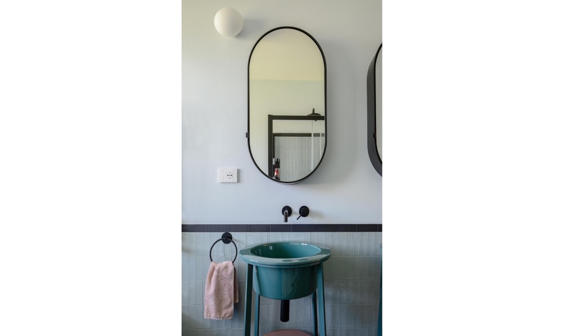 hanno finiture e colori moderni e gli accessori neri danno un leggero tocco industrial. Catino tondo smeraldo di [Ceramica Cielo] come gli specchi