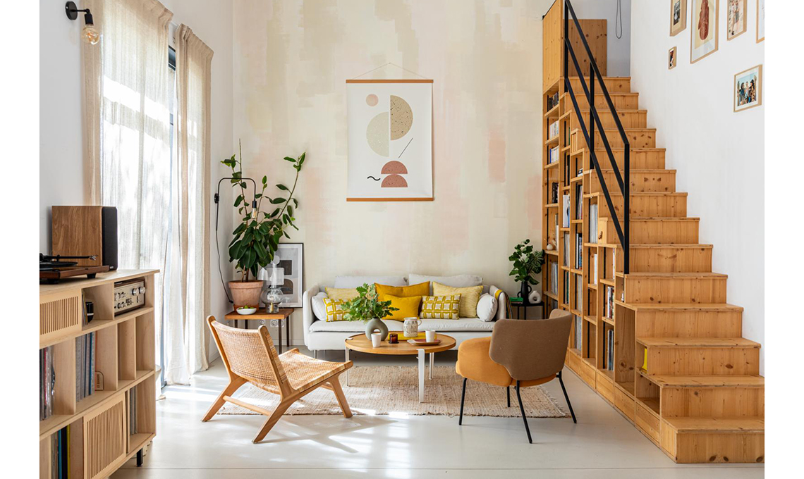 Da rimessa di autobus a loft dei sogni... La ristrutturazione ha il legno come leitmotiv di tutta la casa. A partire da una scala che è anche maxi libreria!