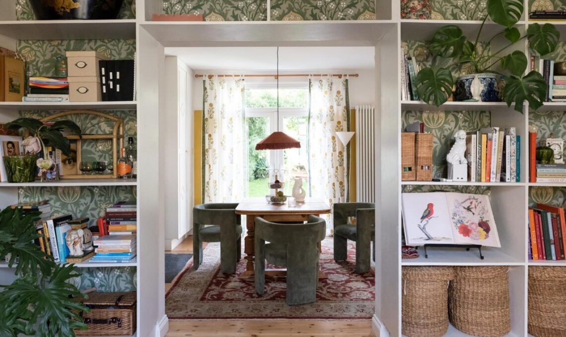 Anna Ambrosi, interior designer (@annaambrosi.interiordesign), è la proprietaria di questa casa di Londra: qui vive con il marito Riccardo e i due figli, Teodoro e Leopoldo. Per incorniciare la vista sul giardino, Anna ha studiato una soluzione décor (e funzionale): la libreria a ponte, su disegno, con wallpaper di sfondo. Wallpaper Elmcote [Morris & Co.], poltroncine in velluto Kalaspel [su » made.com, cm 60x54x70h].