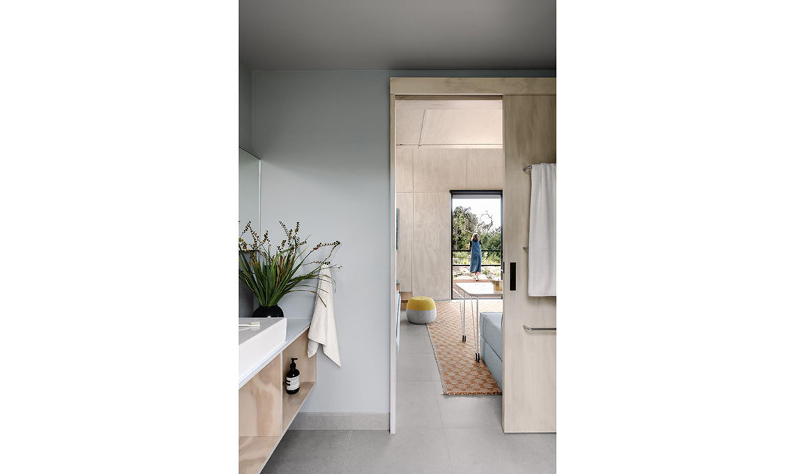 I colori neutri, perfetti complici nella ricerca dell’essenziale. Affacciata sull’oceano, la casa è stata mimetizzata ad arte con il lavoro degli artisti April Philips, Beci Orpin, Carla McRae e David Booth.