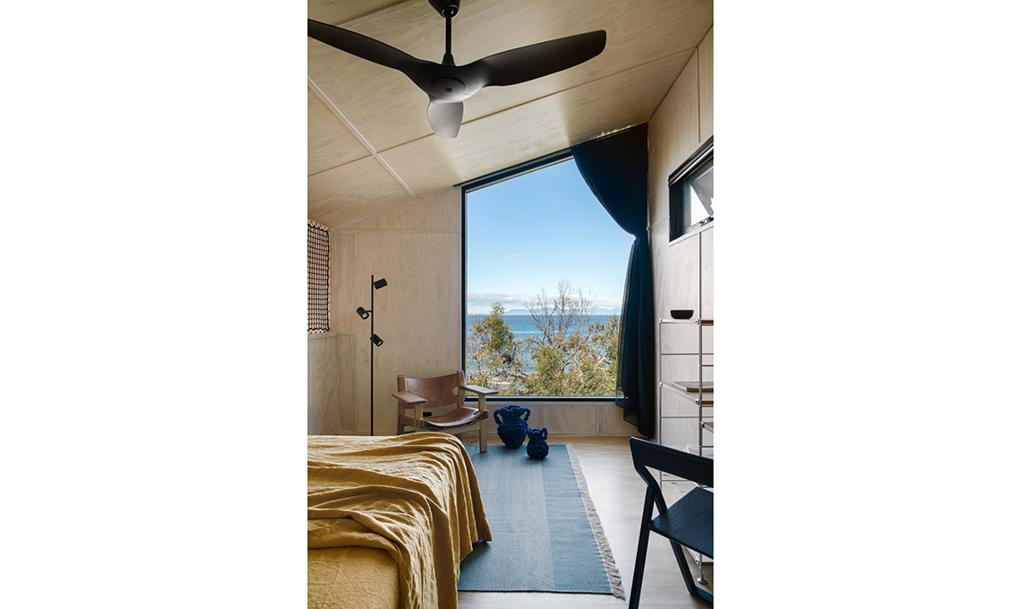 La ‘Magic Beach House’ – questo è il suo nome – è una casa sostenibile, passiva, che utilizza mezzi di costruzione leggeri (strutture in legno) e ampie vetrate che massimizzano il guadagno solare passivo e le proprietà isolanti. Gli interni, rivestiti da multistrato di pino, danno una lezione di utilizzo dello spazio: il tavolo ha le ruote, i letti si impacchettano, le minime possibilità di accumulo tengono a bada il disordine e ci sono aree definite per cucinare, lavare, meditare e riposare.
