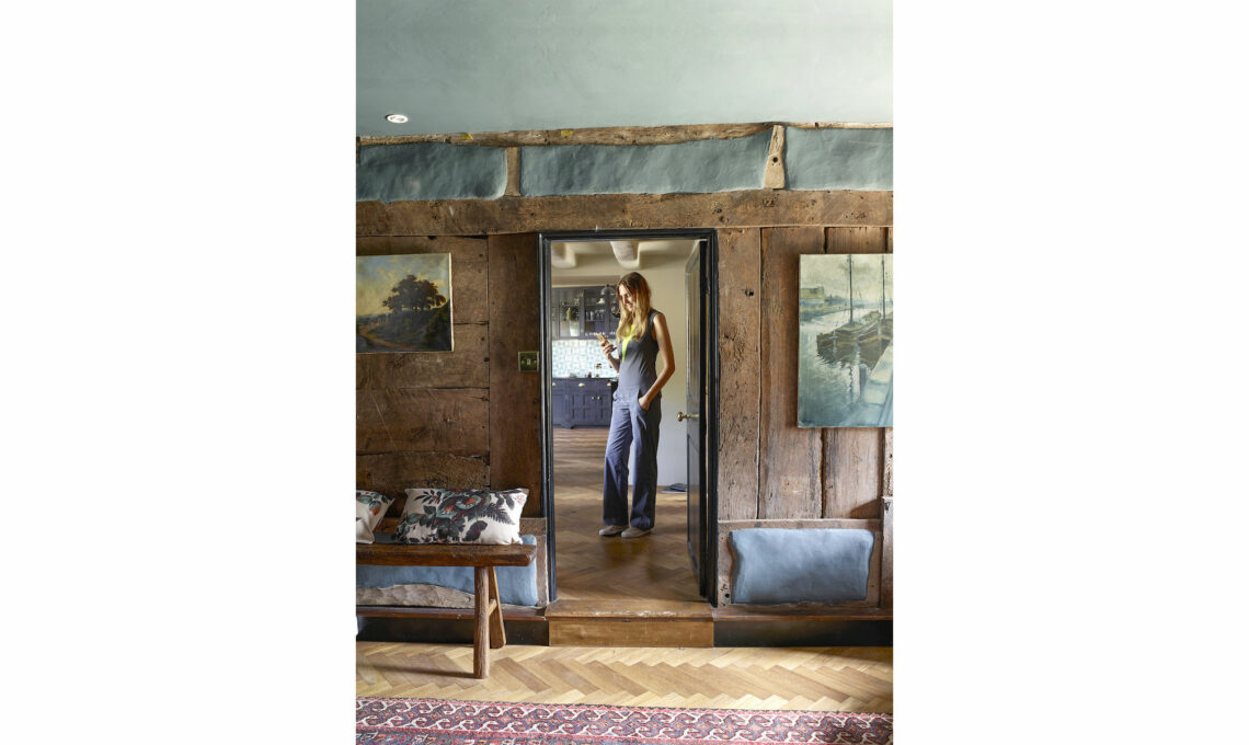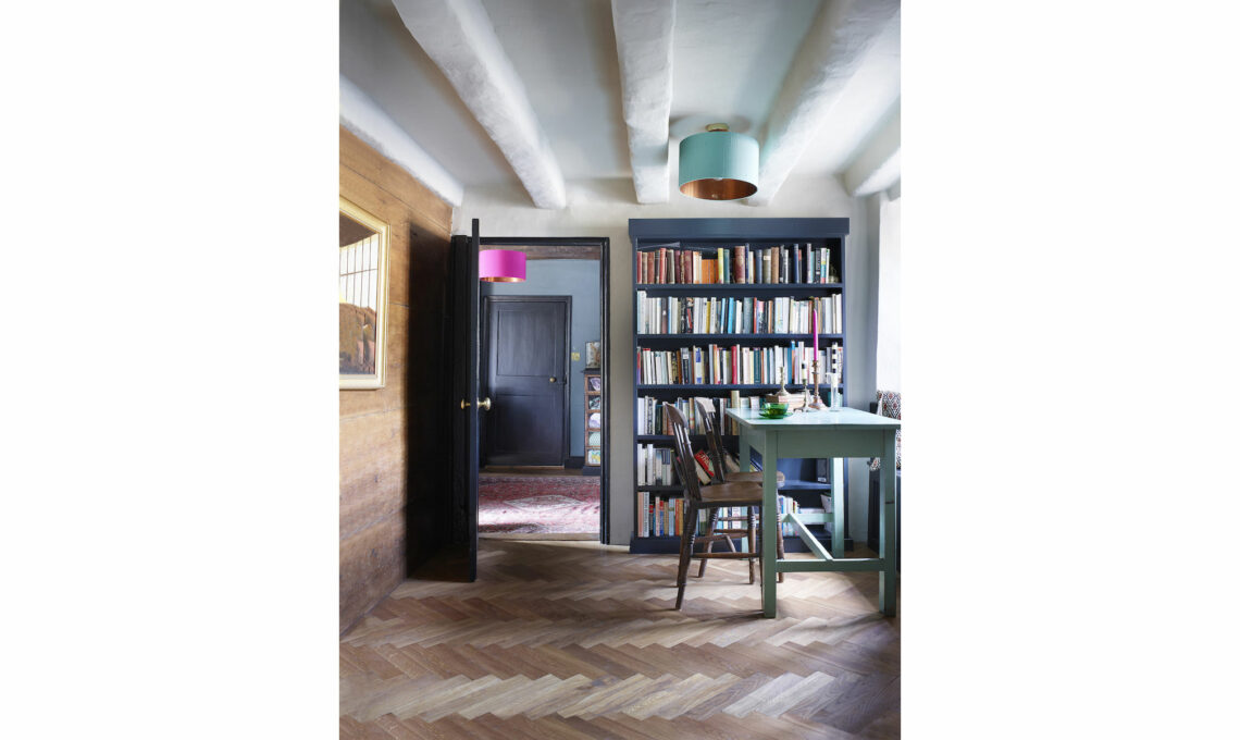 Questa stanza più piccola, rivestita di quercia, si trova nel nucleo Tudor della casa: Susy l’ha valorizzata aggiungendo un parquet a spina di pesce e un tavolo vintage, che ha scelto per il colore brillante che imita le piastrelle della cucina. Ci avevi fatto caso?