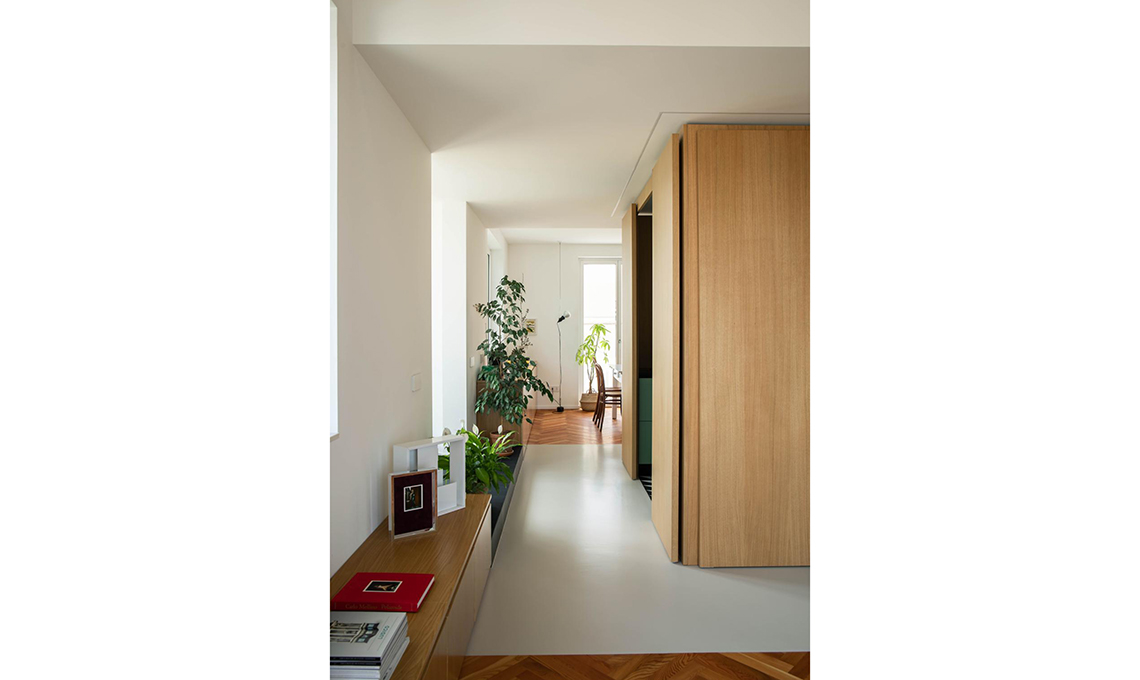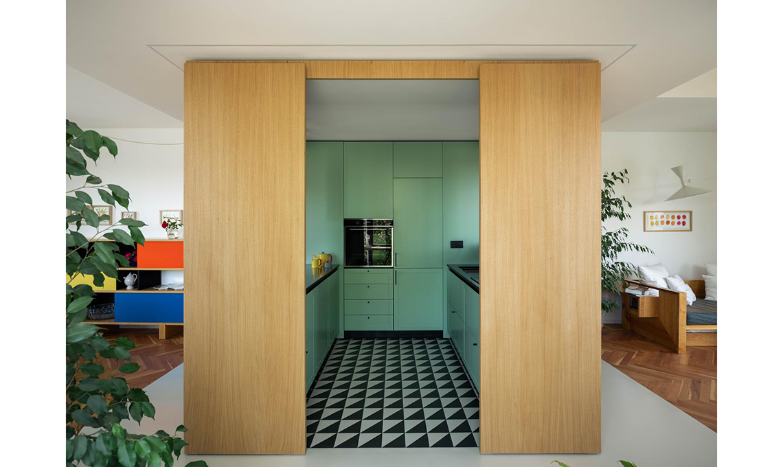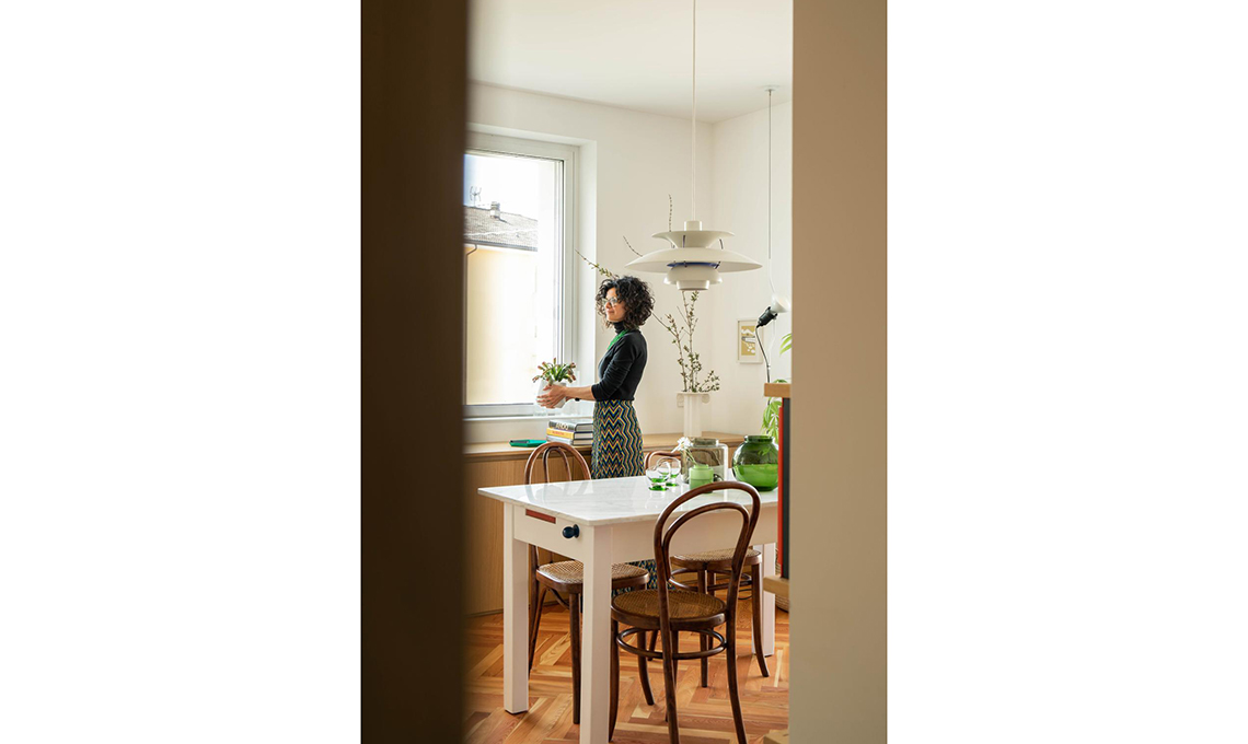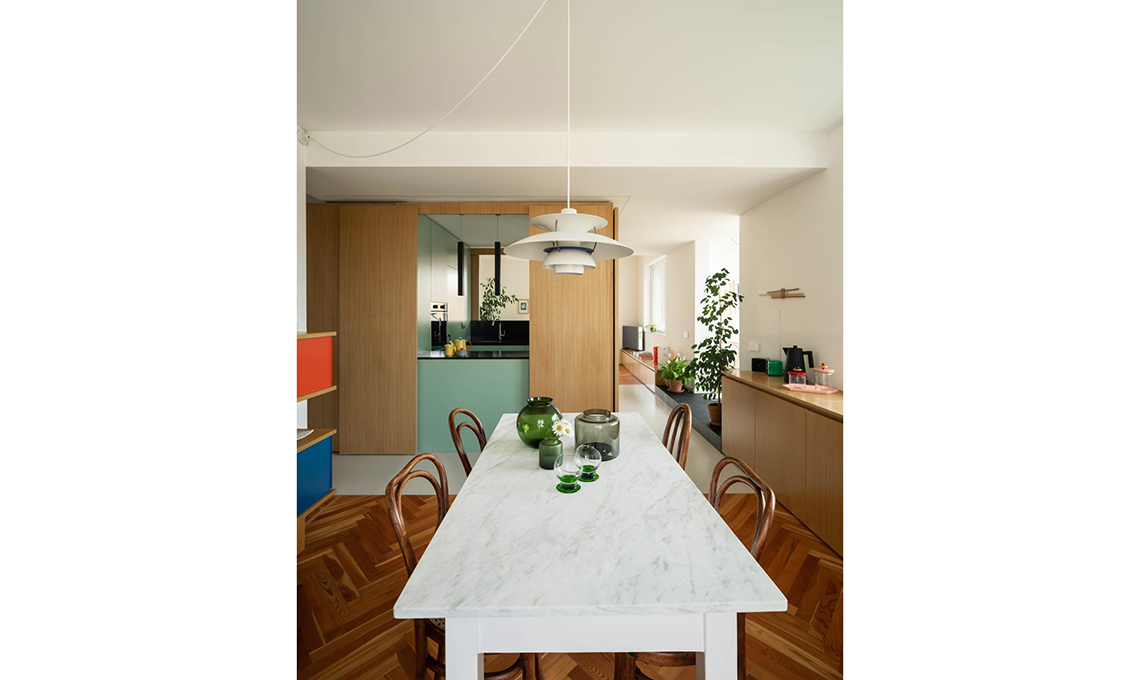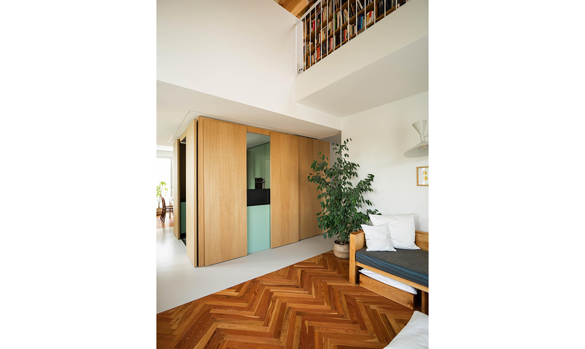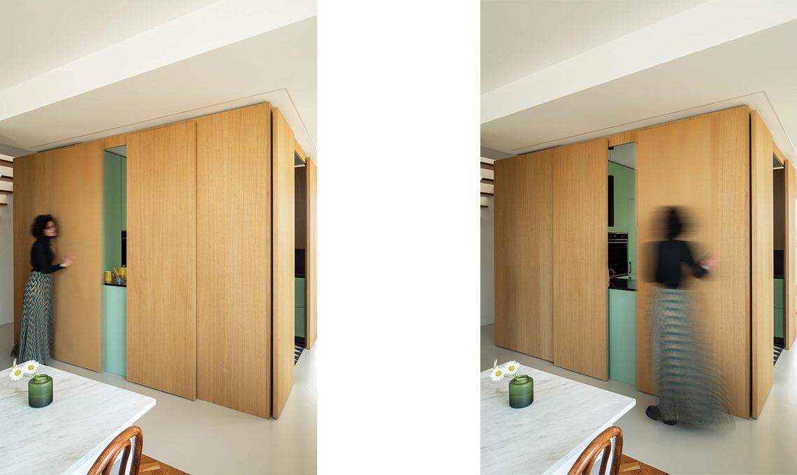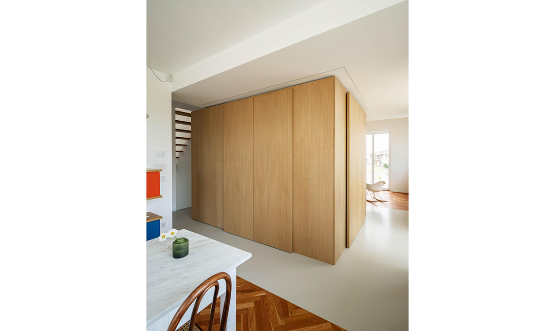La casa è il risultato di uno studio degli spazi che reinterpreta in chiave moderna i suoi Anni ’50. Il vero cuore del progetto è di certo il cucinino, rivisto come un’unità divisoria, resa mobile – e attuale – grazie alle ante scorrevoli. Poi si è sfondato il solaio per sfruttare e dare rilievo alla doppia altezza del living open space, che prende luce anche dalle finestre da tetto del piano superiore.