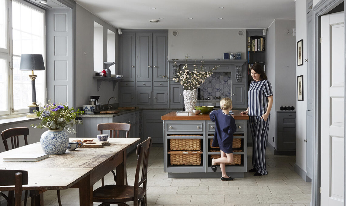 Malin Glemme, designer e fondatrice del brand d’interni Layered, sorride ricordando il giorno in cui dà un’occhiata casuale agli annunci immobiliari e si imbatte in quella che diventerà la sua casa. Il marito Kristofer cerca di arginare in modo secco il suo entusiasmo: «Si trovava sul lato più lontano dell’isola di Lidingö, il che significava fare ogni giorno un tragitto di 20 o 30 minuti in traghetto per andare al lavoro, ma io ero già innamorata! Avevo visto questi soffitti, i rivestimenti, la terrazza chiusa...». Due anni dopo la famiglia trasloca. E per andare al lavoro? «Il battello dei pendolari passa proprio sotto la nostra villa e va al centro di Stoccolma. È una delle cose divertenti del vivere qui!» esclama Malin.