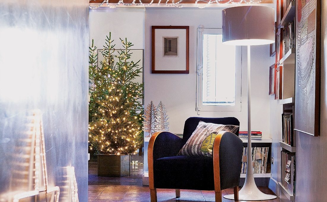 Benvenuti! In occasione del Natale, tutto si veste di luce. All’ingresso di casa, una scritta luminosa augura buone feste e due stelle appoggiate al pavimento sfruttano l’effetto semilucido della parete per un gioco di riflessi elegante e festoso (entrambe di ArteLeta). La poltroncina nera anni ’20 è stata acquistata da Mia (via Ripetta, Roma, €1.800) mentre la piantana è la mitica Spun di Flos (€1.390). Più accogliente di così...