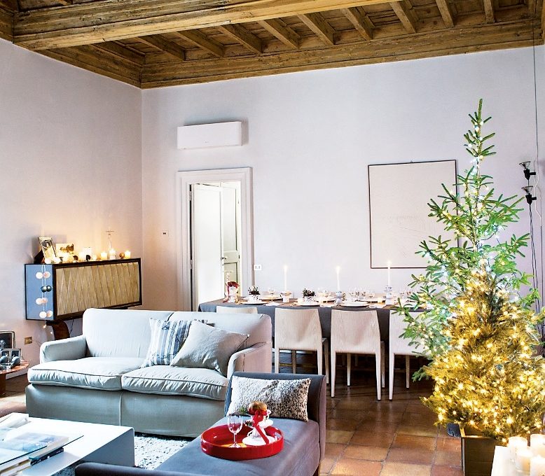 Siamo a Roma, l’appartamento di Anna Elisa è all’ultimo piano di un palazzo del Cinquecento, ed è stato restaurato qualche anno fa su progetto della proprietaria (architetto Lugini de Felice, tel. 333/40.21.341 - [email protected]) secondo i principi della Bioarchitettura: materiali naturali ed ecosostenibili come calce, pozzolana e polvere di marmo di Carrara naturale, utilizzate come finiture per i muri. Conservare i materiali originali era un dovere: i soffitti a cassettoni in castagno sono stati sverniciati e trattati con sali di boro e cera; i pavimenti in cotto del soggiorno e le cementine di bagni e camere sono state recuperate. L’altezza degli ambienti ha permesso di trattare la zona giorno come un open space dall’eleganza classica e di ricavare due strutture a soppalco funzionali e contemporanee. Quella in corrispondenza dell’ingresso è realizzata con putrelle in acciaio verniciate di bianco e travetti di castagno trattati a cera. Alla casa mancava solo il sapore delle Feste: Anna Elisa, il marito Gianmarco e i figli Maria Sofia e Giovanni, con l’aiuto della nostra stylist Cristina Gigli, hanno aggiunto luci e decori raffinati, infondendo un caldo spirito natalizio (e chic!). Scopri tutti i segreti del loro stile!