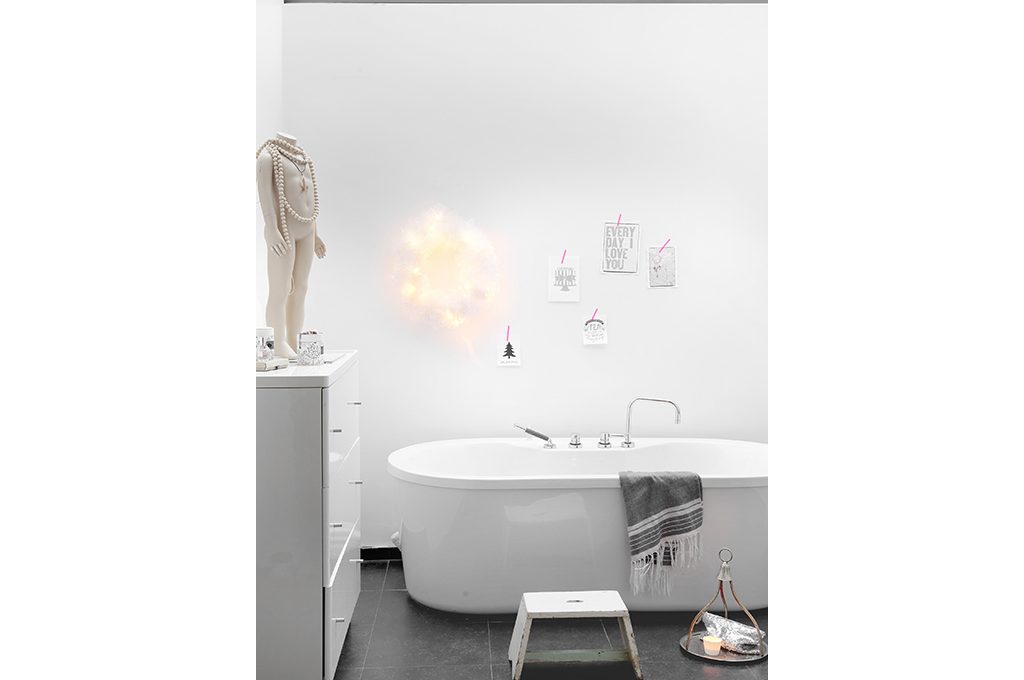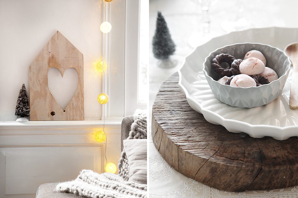 Il tutto bianco di pareti e infissi, le grandi finestre vetrate che inondano di luce la stanza, le prime ‘tracce’ di festa. Piccoli dettagli che arredano.